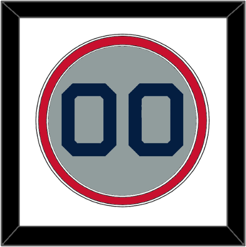 Boston Road Gray Jersey (2009 Through 2013) Number.  Double Mat:  White Mat Over A Red Mat.  Blue Number Mounted On A Gray Mat.  Black Frame.