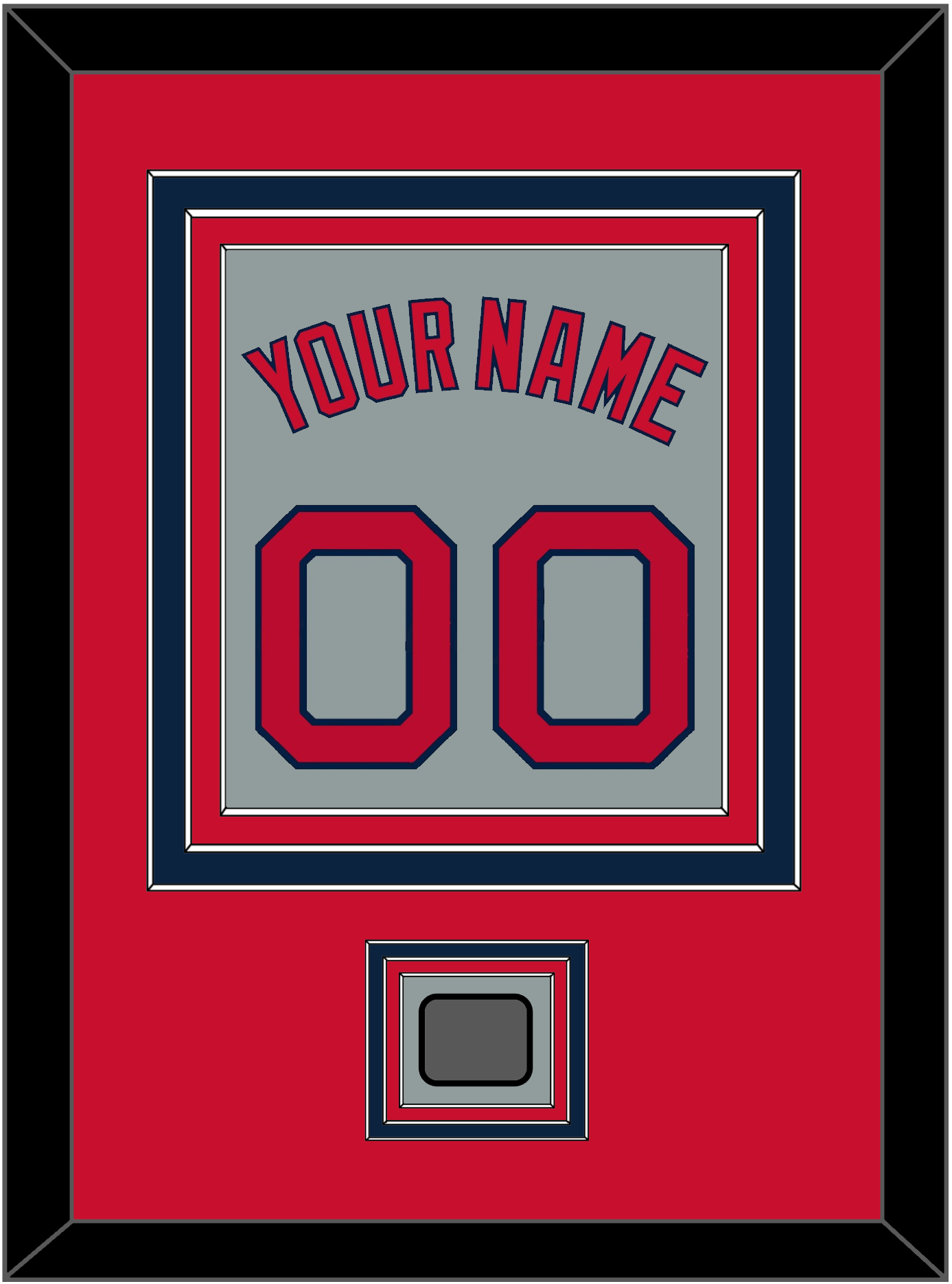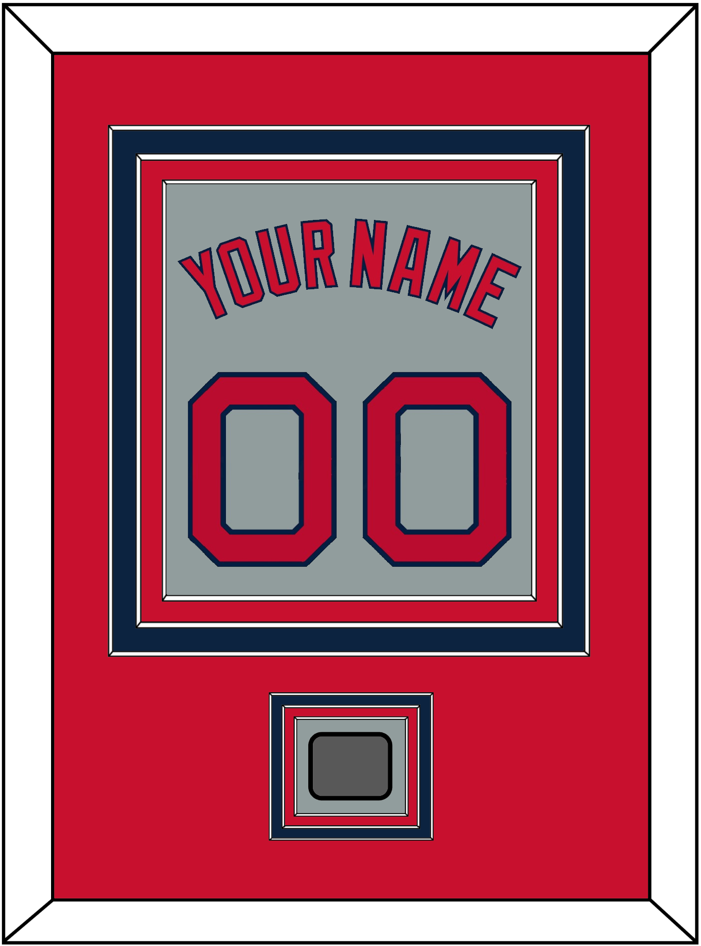 Boston Road Gray Jersey Name & Number With 2004, 2007, 2013 Or 2018 World Series Jersey Patch. Triple Mat Cut: Red Mat Over A Blue Mat Over A Red Mat. Red Name, Number & Patch Mounted On A Gray Mat. White Or Black Frame.