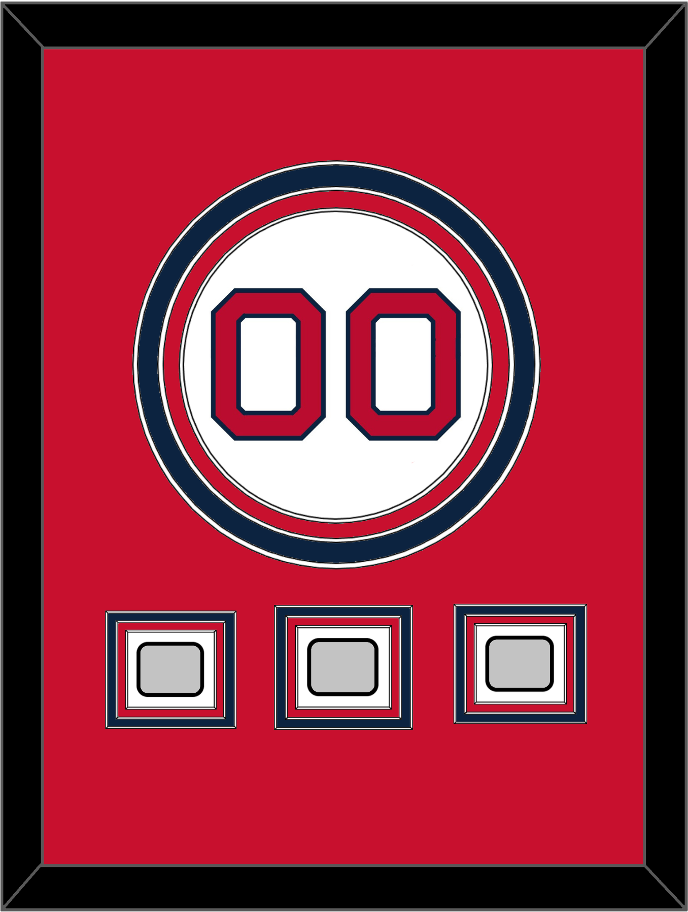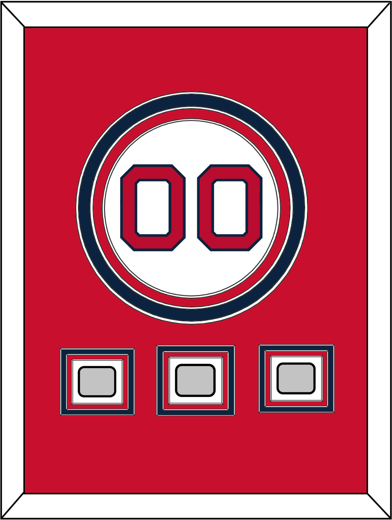 Boston Home White Jersey Number With 3 World Series Champions Patches: 2004, 2007 & 2013 Or 2007, 2013 & 2018. Triple Mat Cut: Red Mat Over Blue Mat Over A Red Mat. Red Number & Patches Mounted On A White Mat. White Or Black Frame.