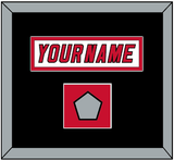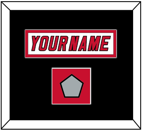 Carolina Road White Jersey (2000 Through 2007) Nameplate With 2006 Stanley Cup Finals Patch. Single Mat Cut: Black Mat With White Nameplate & Patch Mounted On A Red Mat. White Or Silver Frame.