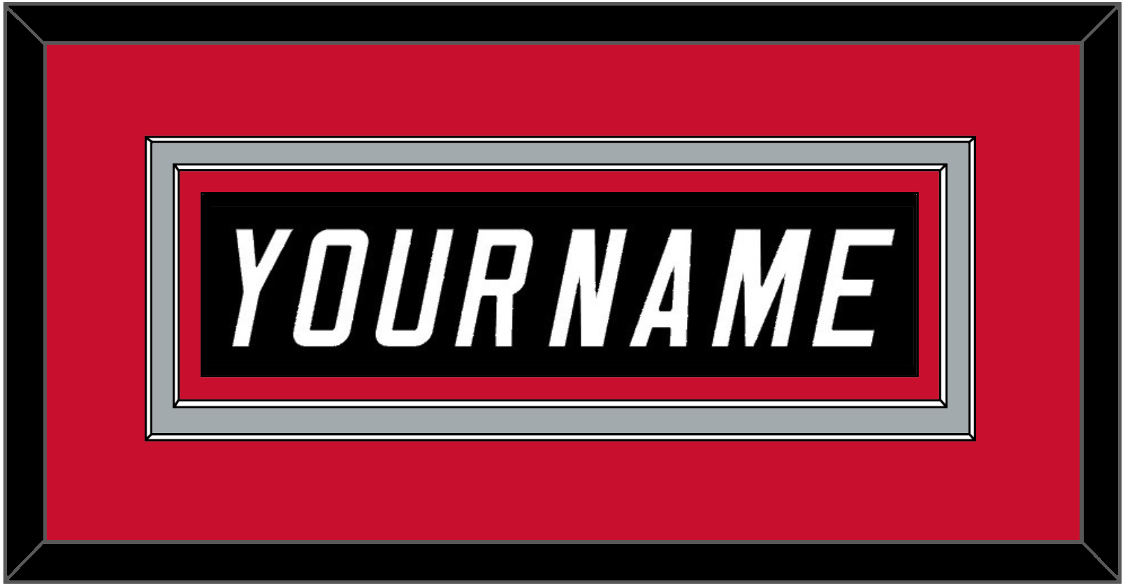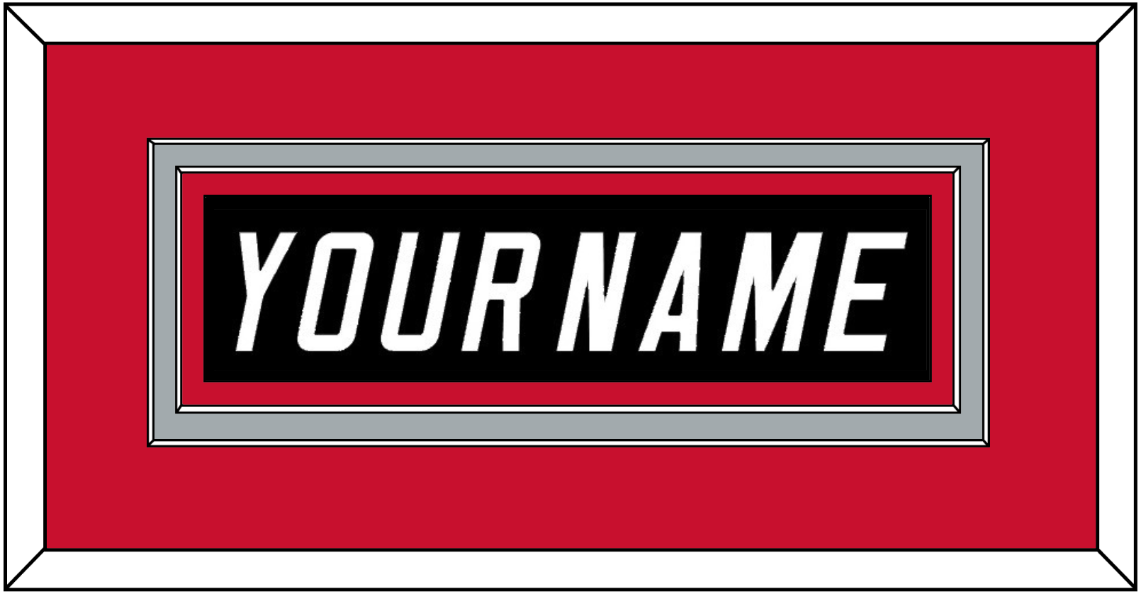 Carolina Alternate Black Jersey (2008 Through 2017) Nameplate. Double Mat: Red Mat Over Silver Mat, Black Nameplate Mounted On Red Mat. Black, White Or Silver Frame.