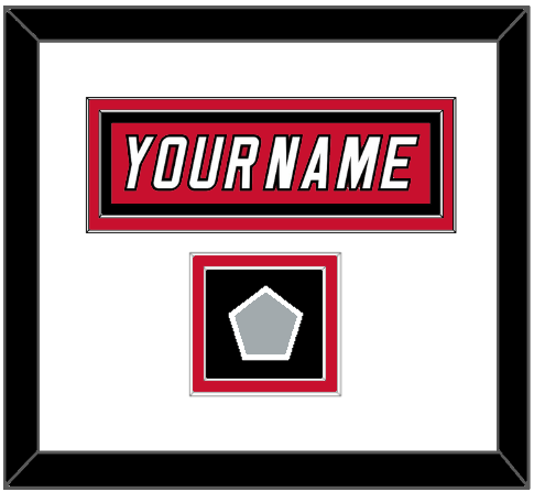 Carolina Home Red Jersey (2000 Through 2007) Nameplate With 2006 Stanley Cup Champions Patch. Double Mat Cut: White Mat Over A Red Mat With Red Nameplate & Patch Mounted On A Black Mat. Black Frame.