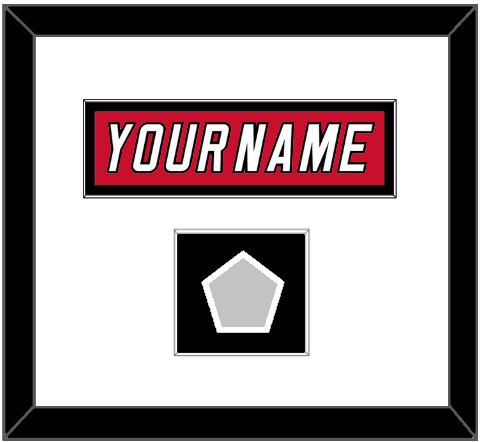 Carolina Home Red Jersey (2000 Through 2007) Nameplate With 2006 Stanley Cup Champions Patch.  Single Mat Cut:  White Mat With Red Nameplate & Patch Mounted On A Black Mat.  Black Frame.
