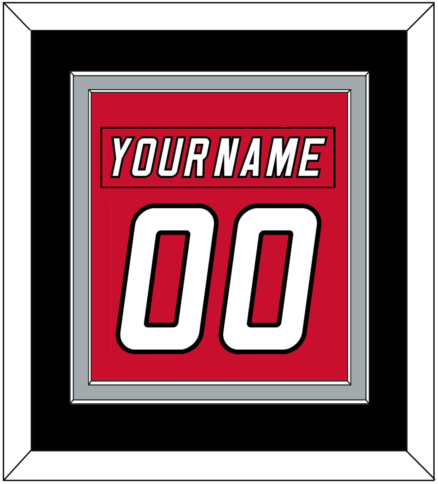 Carolina Road / Home Red Jersey (2000 Through 2007) Nameplate & Number (From The Back Of The Jersey). Double Mat Cut: Black Mat Over A Silver Mat. Red Nameplate And White Number Mounted On A Red Mat. White Or Silver (Metal) Frame.