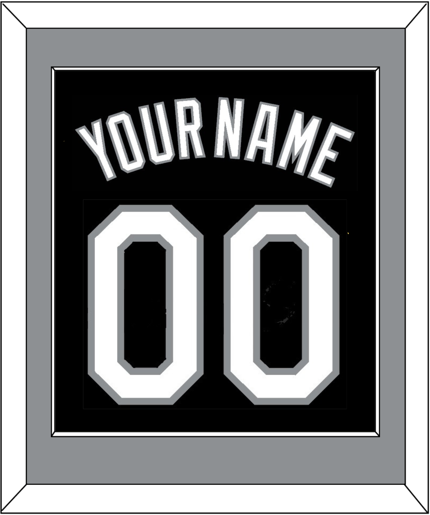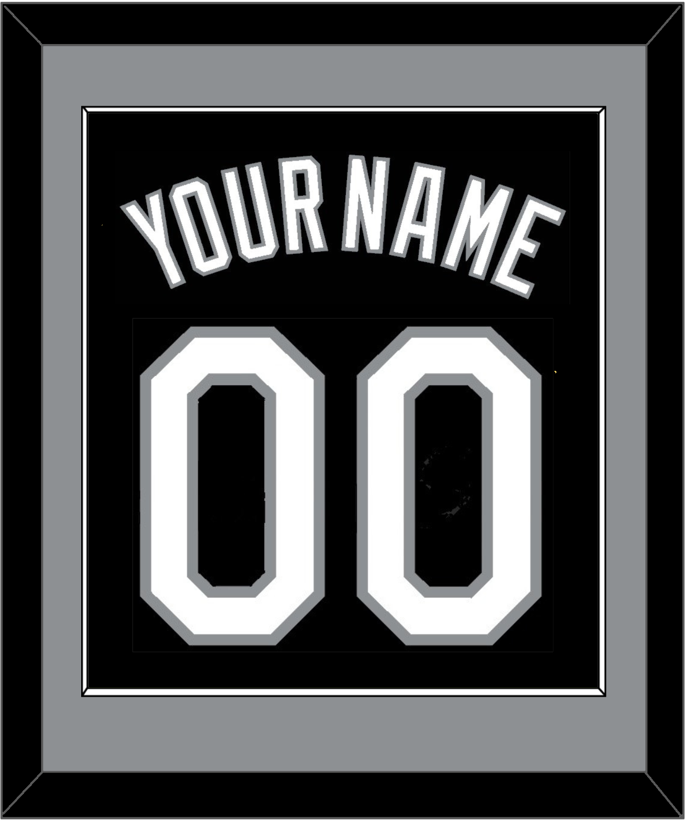 Chicago Alternate Black Jersey (1991 Through 1992) Name & Number. Silver Mat With White Name And Number Mounted On Black Mat. Black Or White Frame.