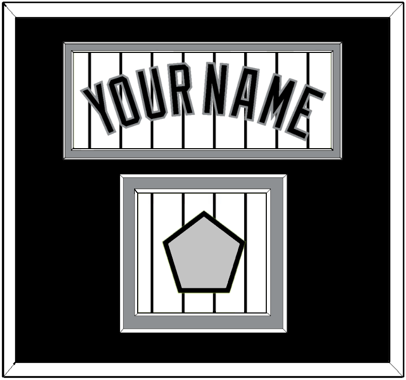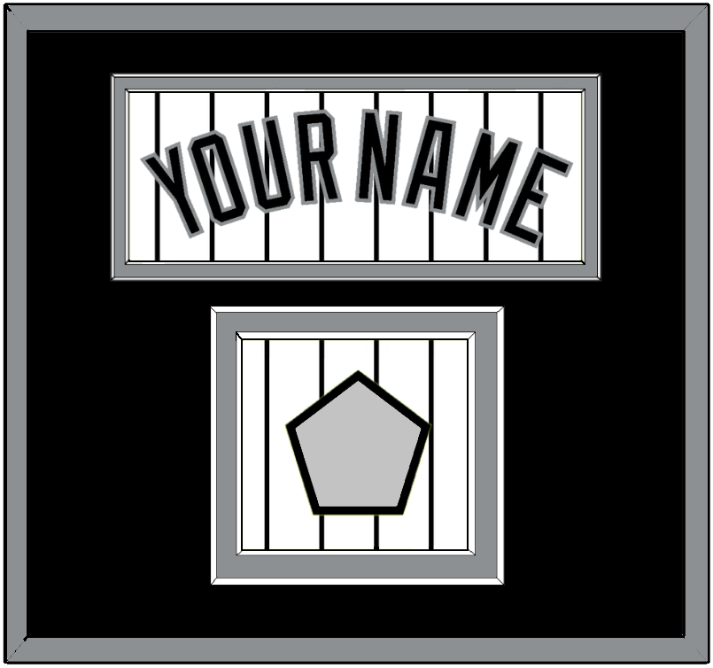 Chicago Home White Pinstripes Jersey Name With 2005 World Series Champions Patch. Double Mat Cut: Black Mat Over A Silver Mat. Black Name & Patch Mounted On Pinstripe Background. White Or Silver (Metal) Frame.
