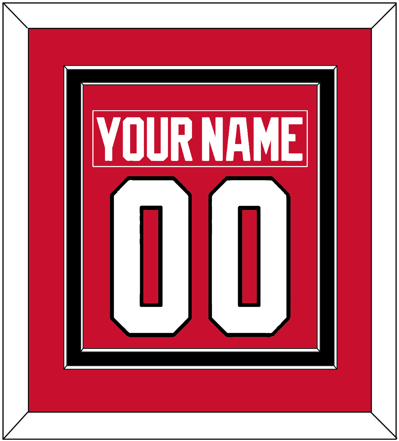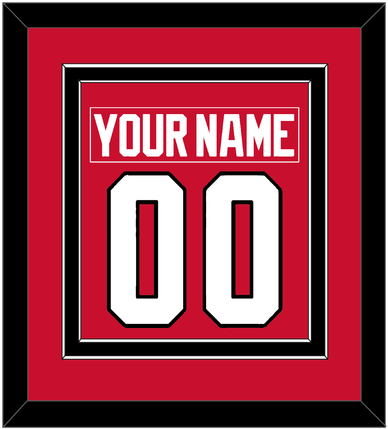 Chicago Home Red Jersey (2007 Through 2017) Nameplate & Number (From The Back Of The Jersey). Double Mat Cut: Red Mat Over A Black Mat. Red Nameplate And White Number Mounted On A Red Mat. Black Or White Frame.