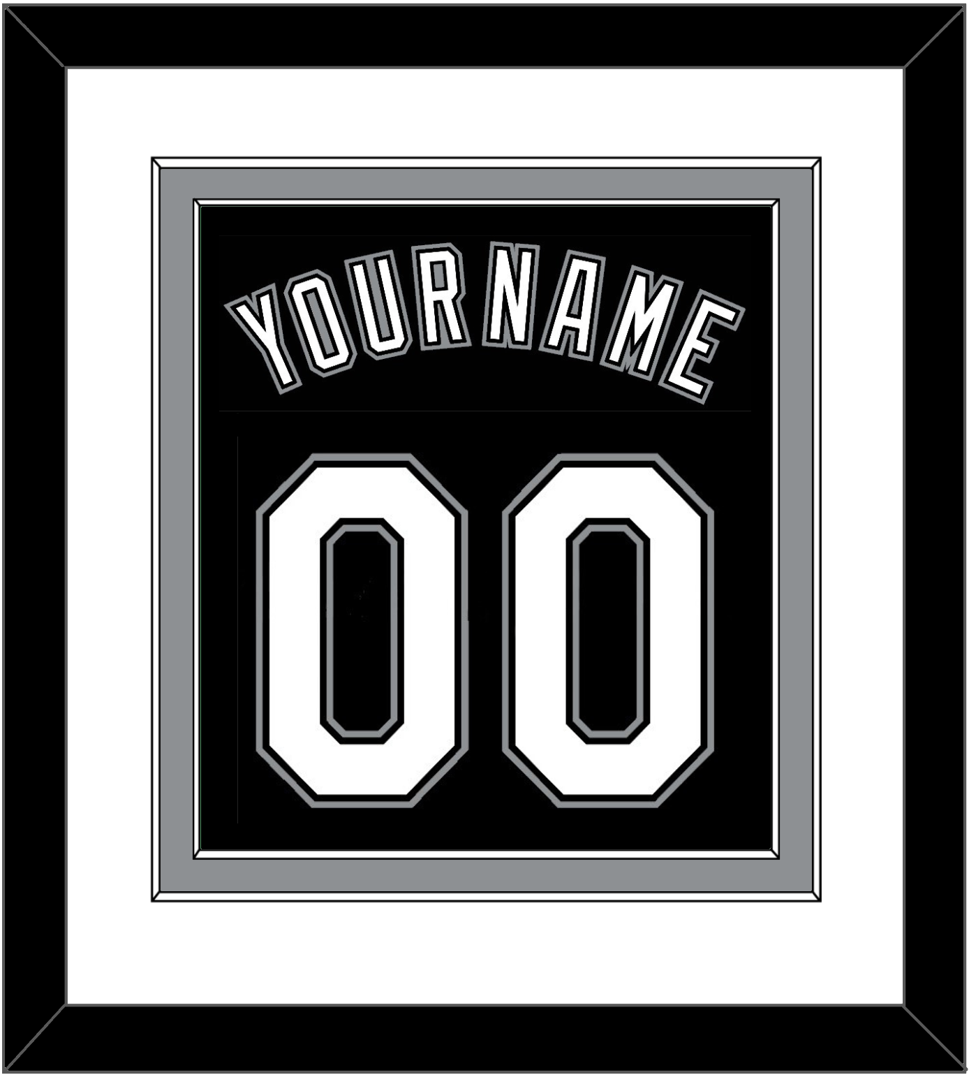 Chicago Alternate Black Jersey Name & Number. White Mat Over A Gray Mat. White Name And Number Mounted On Black Mat. Black Frame.