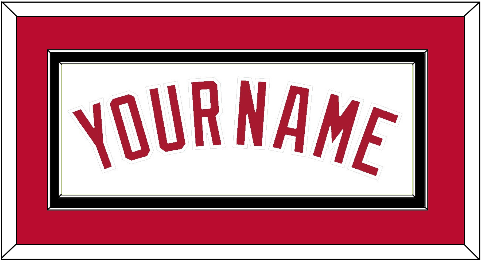 Cincinnati Home White Jersey (1988 Through 1992) Name. Double Mat: Red Mat Over A Black Mat. Red Name Mounted On White Mat. Black Or White Frame.