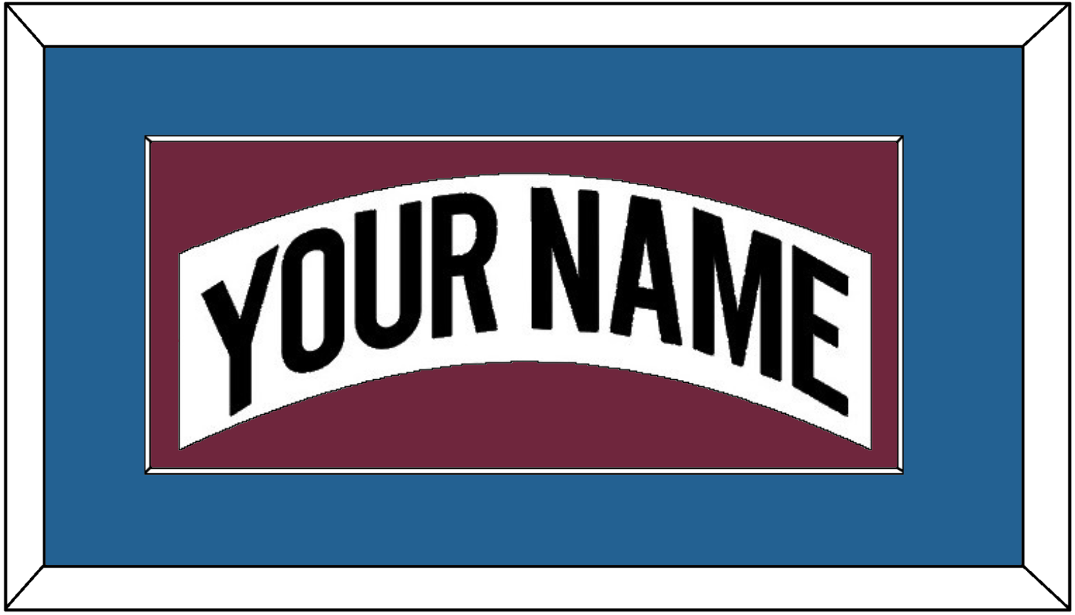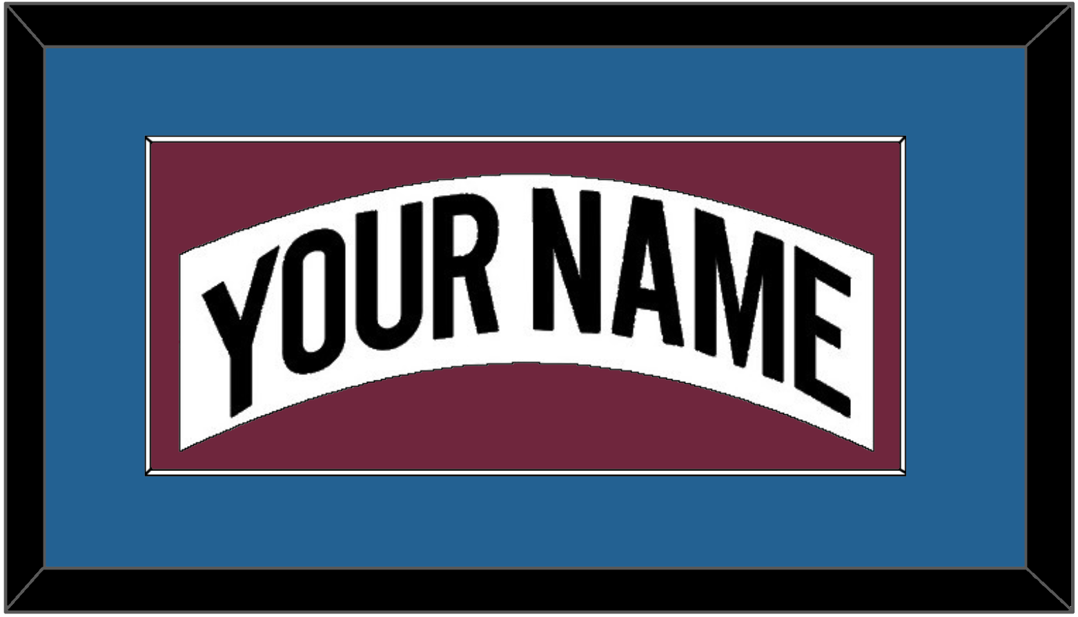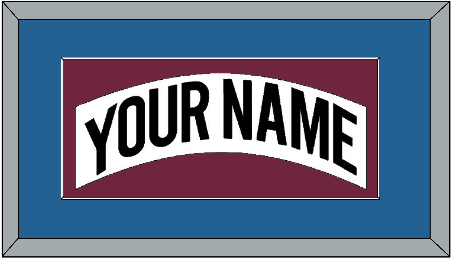 Colorado Home White Jersey (1999 Through 2001) Nameplate. Single Mat: Blue Mat, White Nameplate Mounted On Burgundy Mat. White, Black Or Silver Frame.