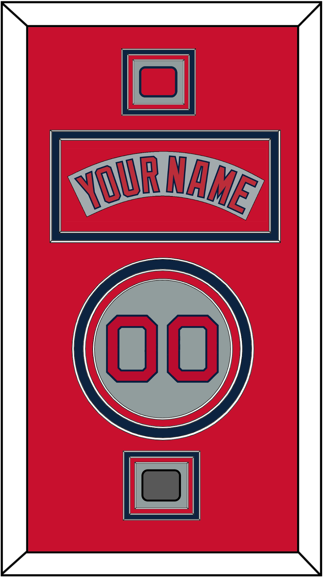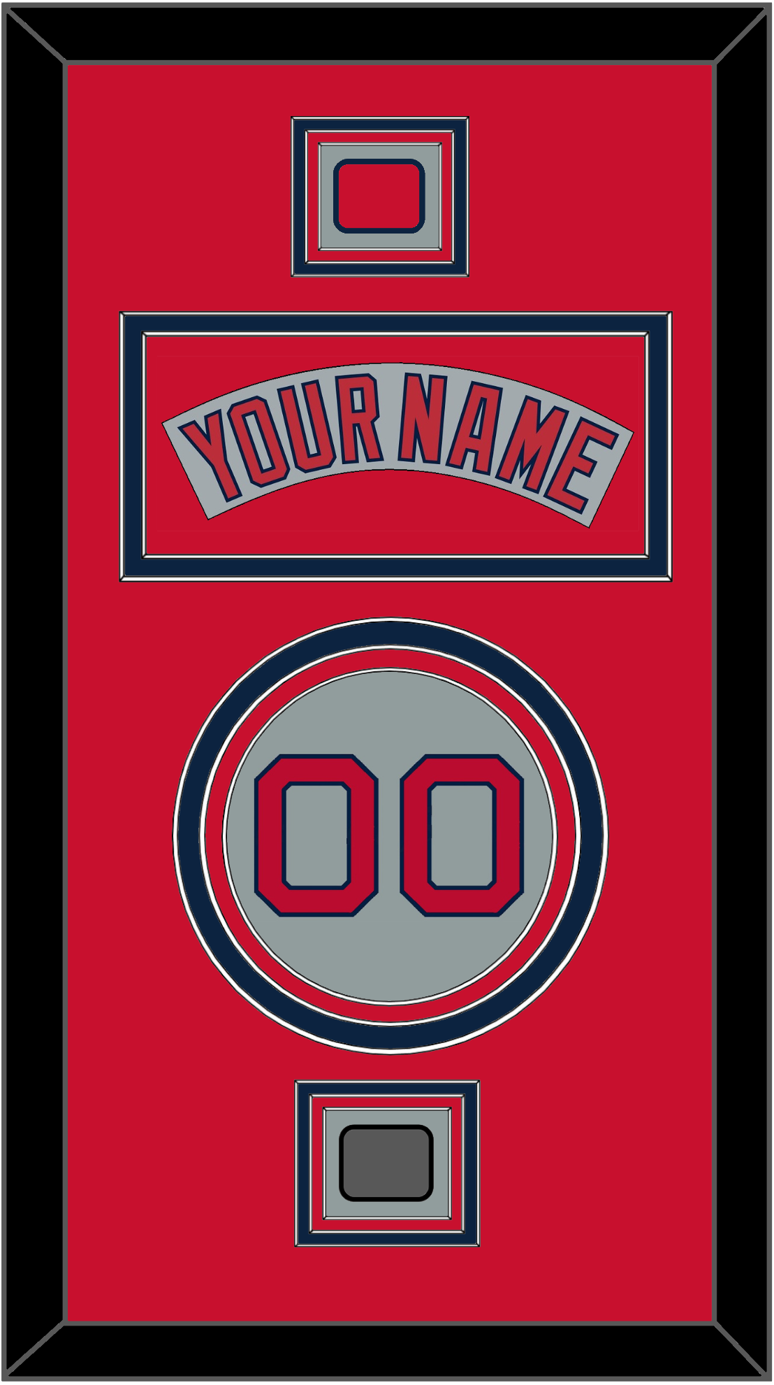 Boston Road Gray Jersey (1992 Through 2008) Nameplate, Number, Logo Sleeve Patch And World Series Champions Patch (2004, 2007, 2013 Or 2018). Nameplate Is Double Mat Cut: Red Mat Over A Blue Mat. Gray Nameplate Mounted On A Red Mat. To Match The Jersey, Number And Patches Are Triple Mat Cut: Red Mat Over A Blue Mat Over A Red Mat. Red Number & Patches Mounted On A Gray Mat. White Or Black Frame.