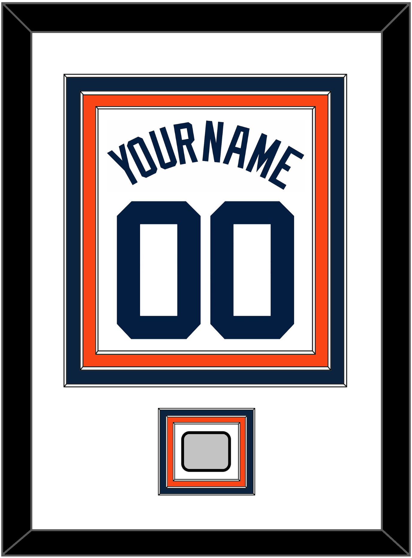 Detroit Home White Jersey (1972 Through 2017) Name & Number With 1984 World Series Patch. Triple Mat Cut: White Mat Over A Blue Mat Over An Orange Mat. Blue Name, Number & Patch Mounted On A White Mat. Black Frame.