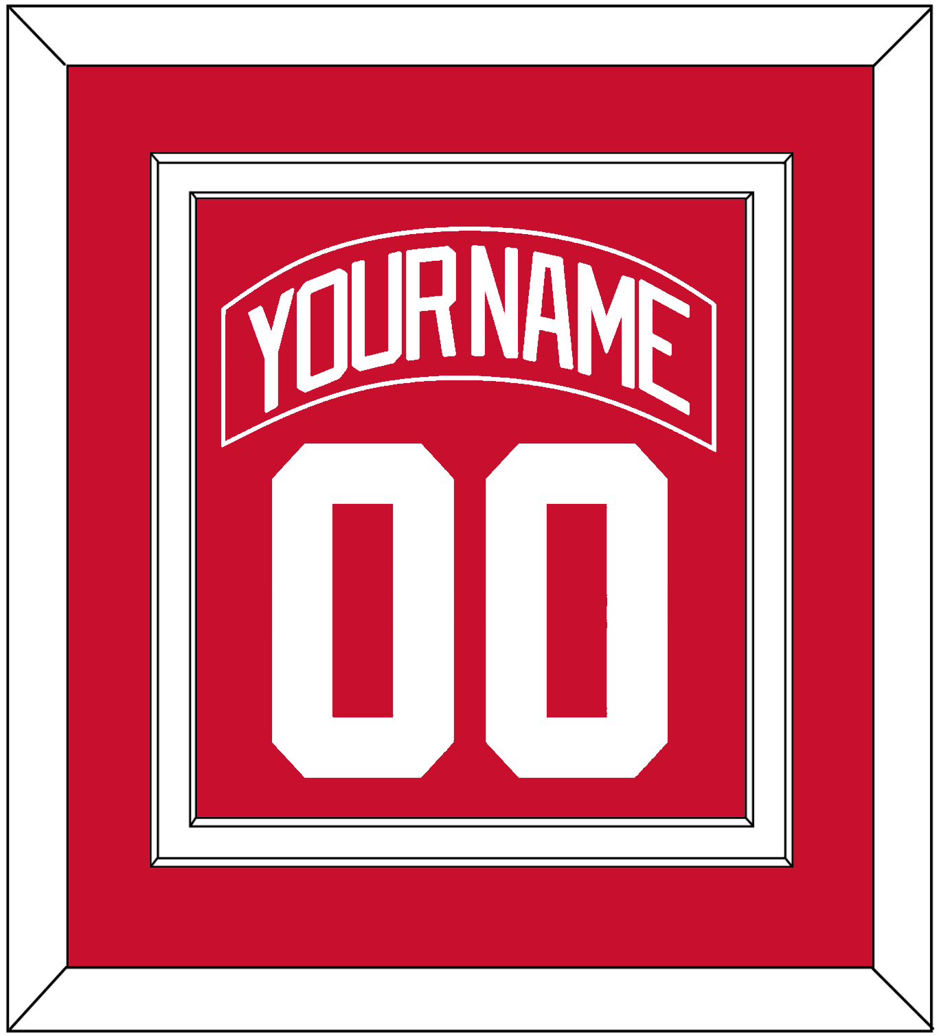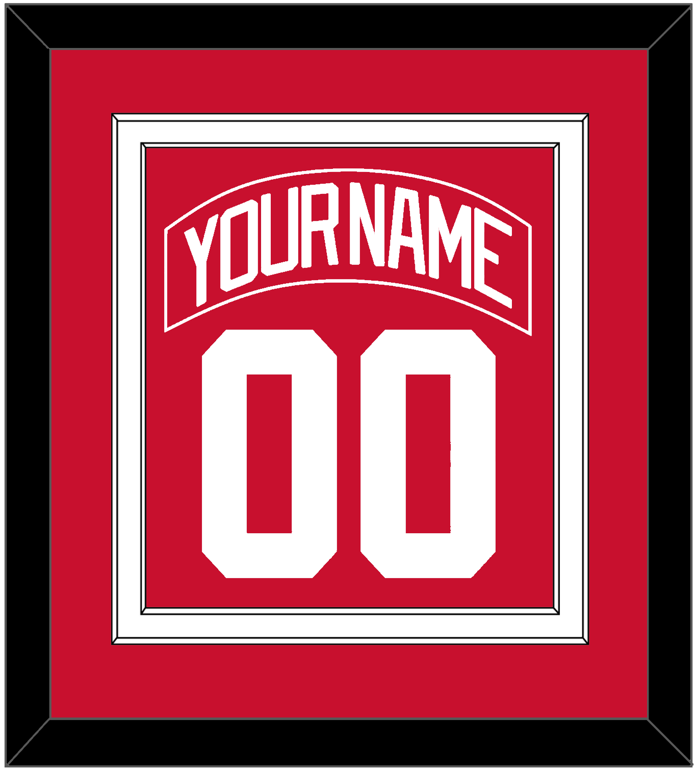 Detroit Road Red Jersey (1983 Through 1987) Nameplate & Number (From The Back Of The Jersey). Double Mat Cut: Red Mat Over A White Mat. Red Nameplate And White Number Mounted On A Red Mat. White Or Black Frame.