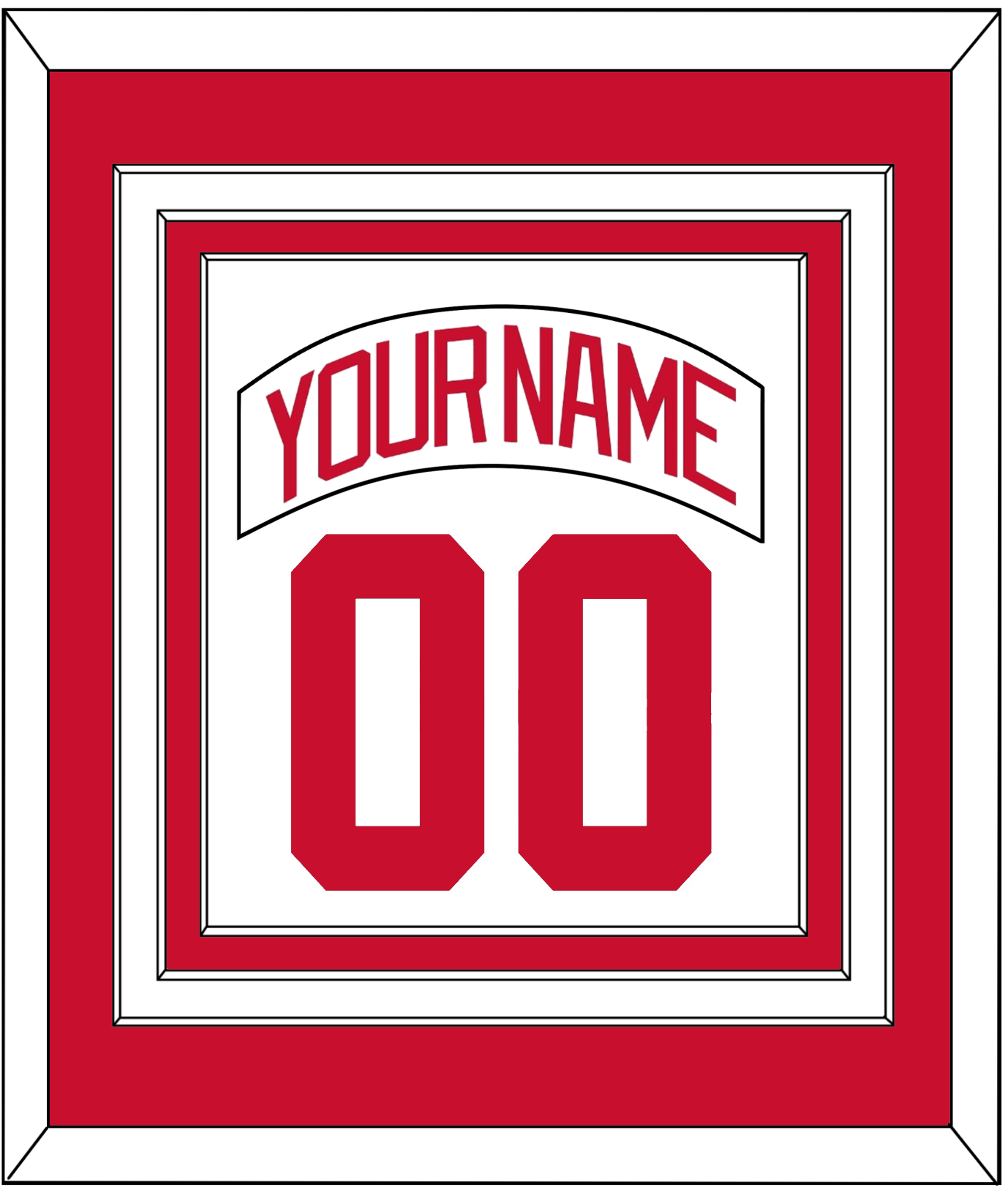 Detroit Road White Jersey (2007 Through 2017) Nameplate & Number (From The Back Of The Jersey). Triple Mat Cut: Red Mat Over A White Mat Over A Red Mat. White Nameplate And Red Number Mounted On A White Mat. White Or Black Frame.
