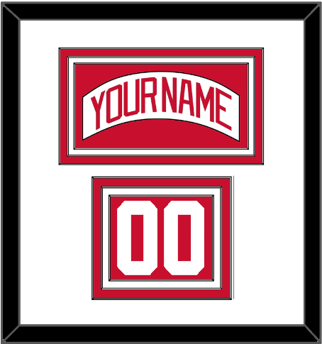 Detroit Road White Jersey (2007 Through 2017) Nameplate & Numbers From Shoulder - White Mat Over A Red Mat Over A White Mat.   The White Nameplate & White Numbers Mounted On Red Mat. Black Frame.