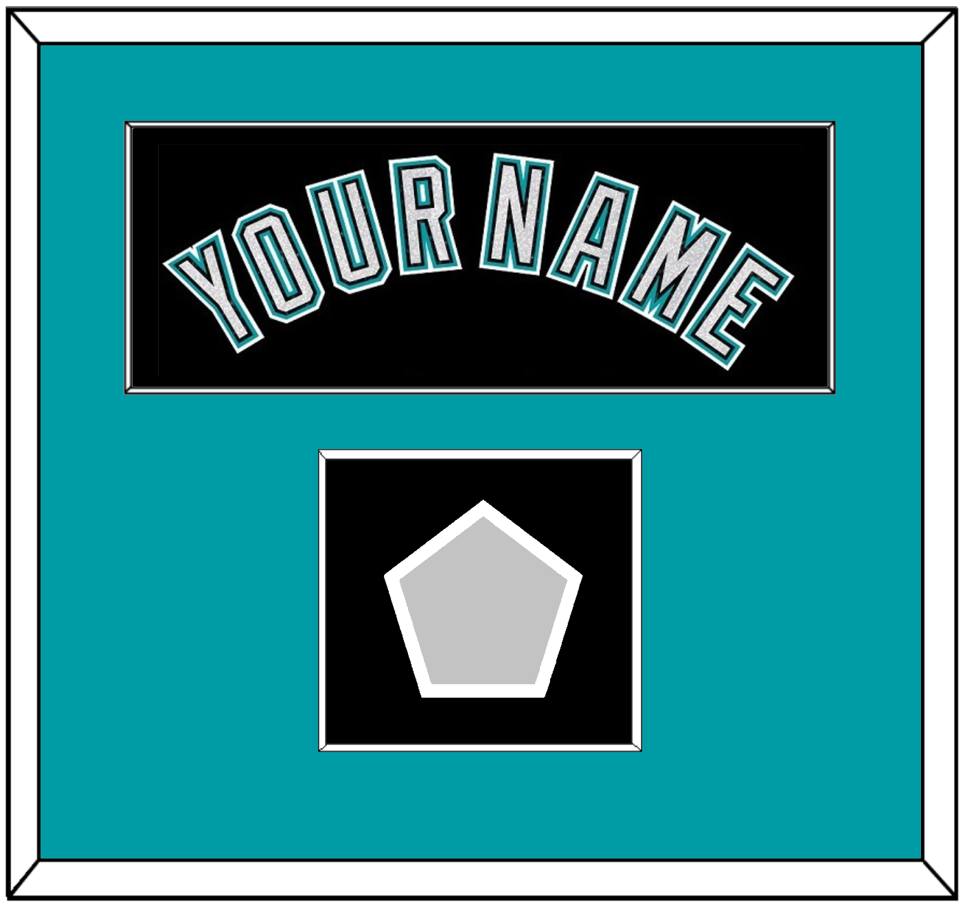 Florida Alternate Black Jersey (2003 Through 2011) Name With 2003 World Series Champions Patch. Single Mat: Teal Mat With Black Name & Patch Mounted On A Black Mat. Black, White Or Silver (Metal) Frame.