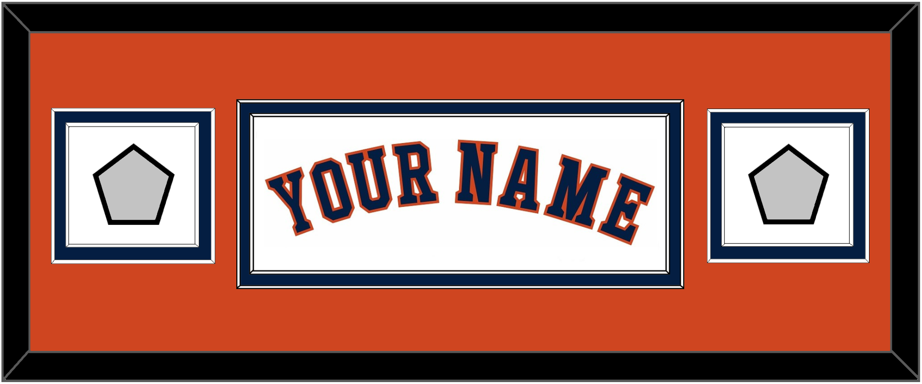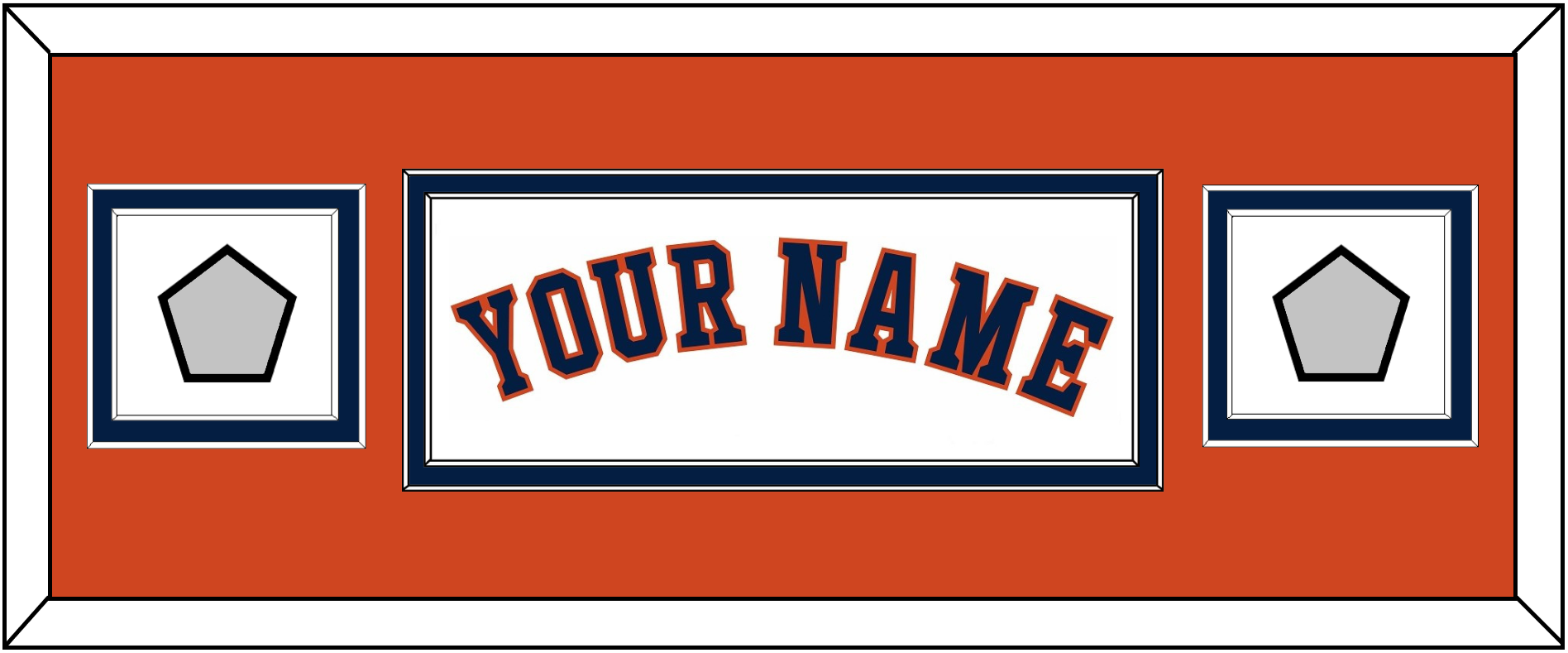 Houston Home White Jersey Name With 2017 & 2022 World Series Jersey Patches. Double Mat Cut: Orange Mat Over A Blue Mat. Blue Name & Patches Mounted On A White Mat. White Or Black Frame.