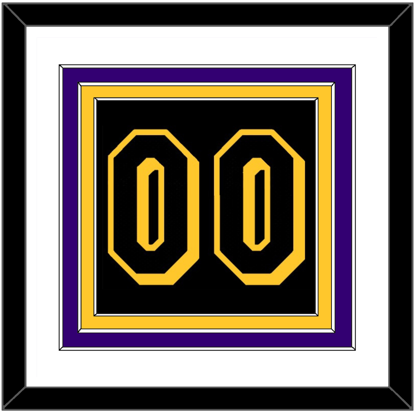 Los Angeles Black Mamba Jersey (2017 Through 2018 & 2020) Number, Designed By Kobe Bryant In 2017. Triple Mat Cut: White Mat Over A Purple Mat, Over A Yellow Mat. Black Number Mounted On Black Mat. Black Frame.