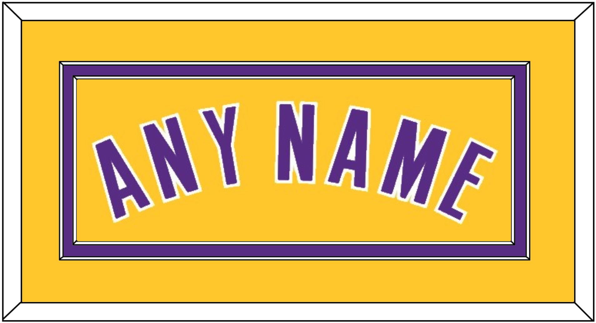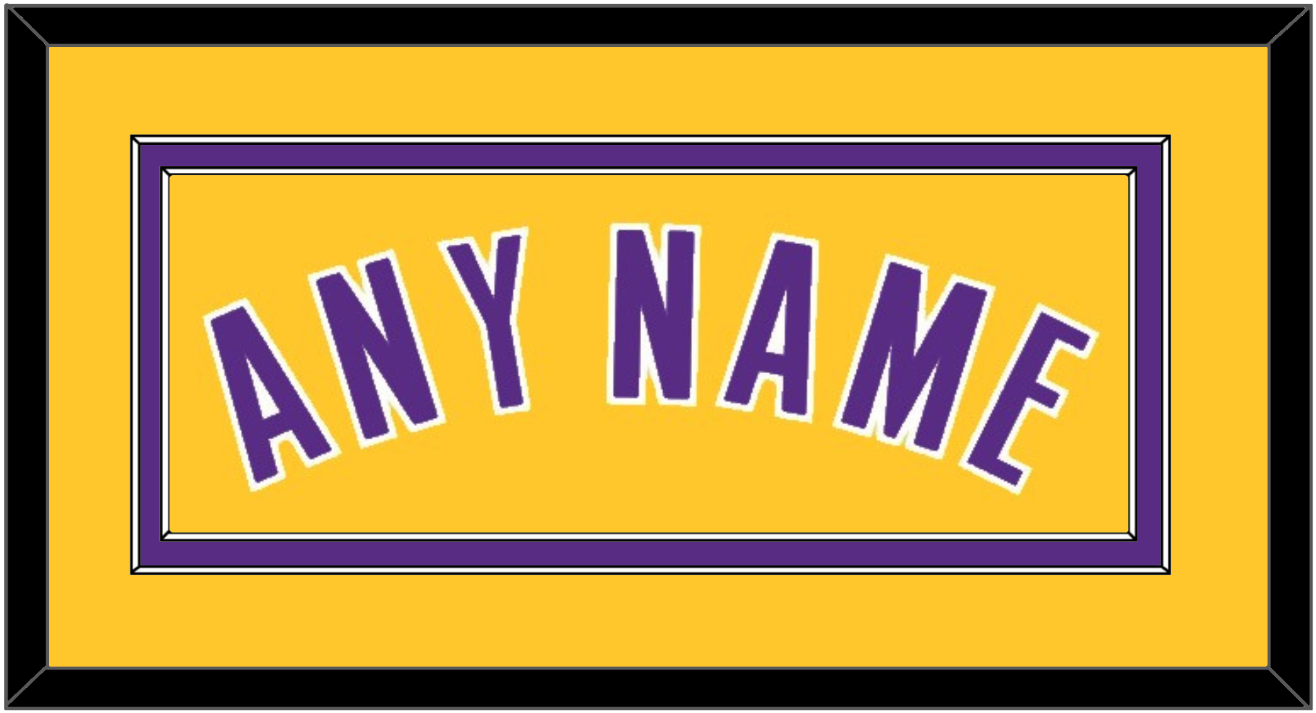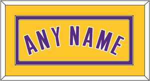 Los Angeles Home Yellow Jersey Name (1999 Through 2018). Double Mat: Yellow Mat Over A Purple Mat, Purple Name Mounted On Yellow Mat. White Or Black Frame.