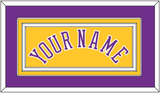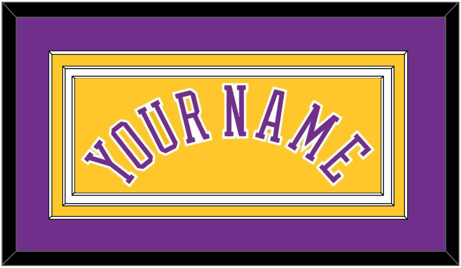 Los Angeles Home Yellow Jersey Name (1999 Through 2018). Triple Mat: Purple Mat Over A Yellow Mat, Over A White Mat. Purple Name Mounted On Yellow Mat. White Or Black Frame.