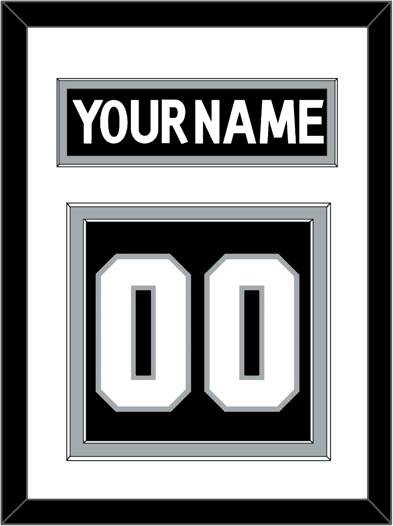 Los Angeles Home Black Jersey (2017 Through 2024) Nameplate & Numbers (From The Back Of The Jersey).  Nameplate Is Single Mat Cut:  White Mat With Black Nameplate Mounted On A Silver Mat.  To Match The Jersey, Number Is Double Mat Cut:  White Mat Over A Silver Mat, White Number Mounted On A Black Mat.  Black Frame.