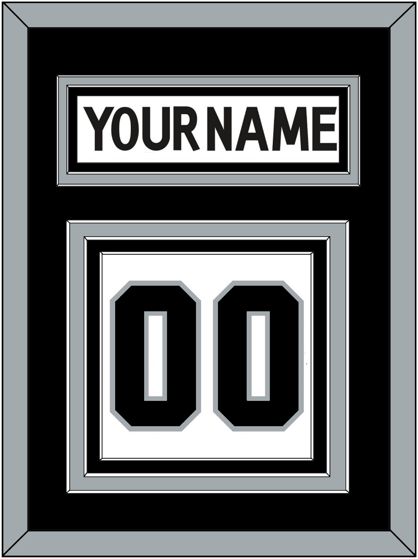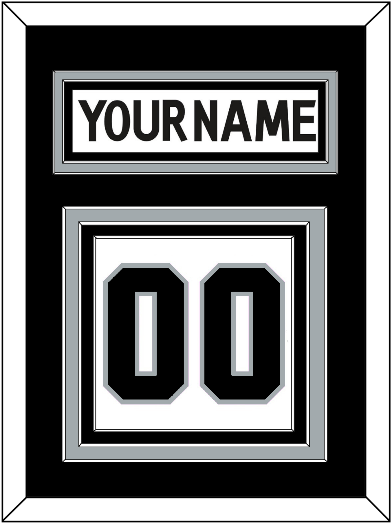 Los Angeles Road White Jersey (2011 Through 2017) Nameplate & Numbers (From The Back Of The Jersey). Nameplate Is Double Mat Cut: Black Mat Over A Silver Mat. White Nameplate Mounted On A Black Mat. To Match The Jersey, Number Is Triple Mat Cut: Black Mat Over A Silver Mat Over A Black Mat. Black Number Mounted On A White Mat. White Or Silver (Metal) Frame.