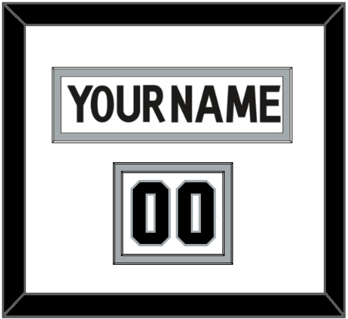 Los Angeles Road White Jersey (2011 Through 2017) Nameplate & Numbers From Shoulder - The Nameplate Is Single Mat Cut: White Nameplate Mounted On Silver Mat. To Match The Jersey, The Numbers Are Double Mat Cut: White Mat Over A Silver Mat. Black Numbers Mounted On A White Mat. Black Frame.