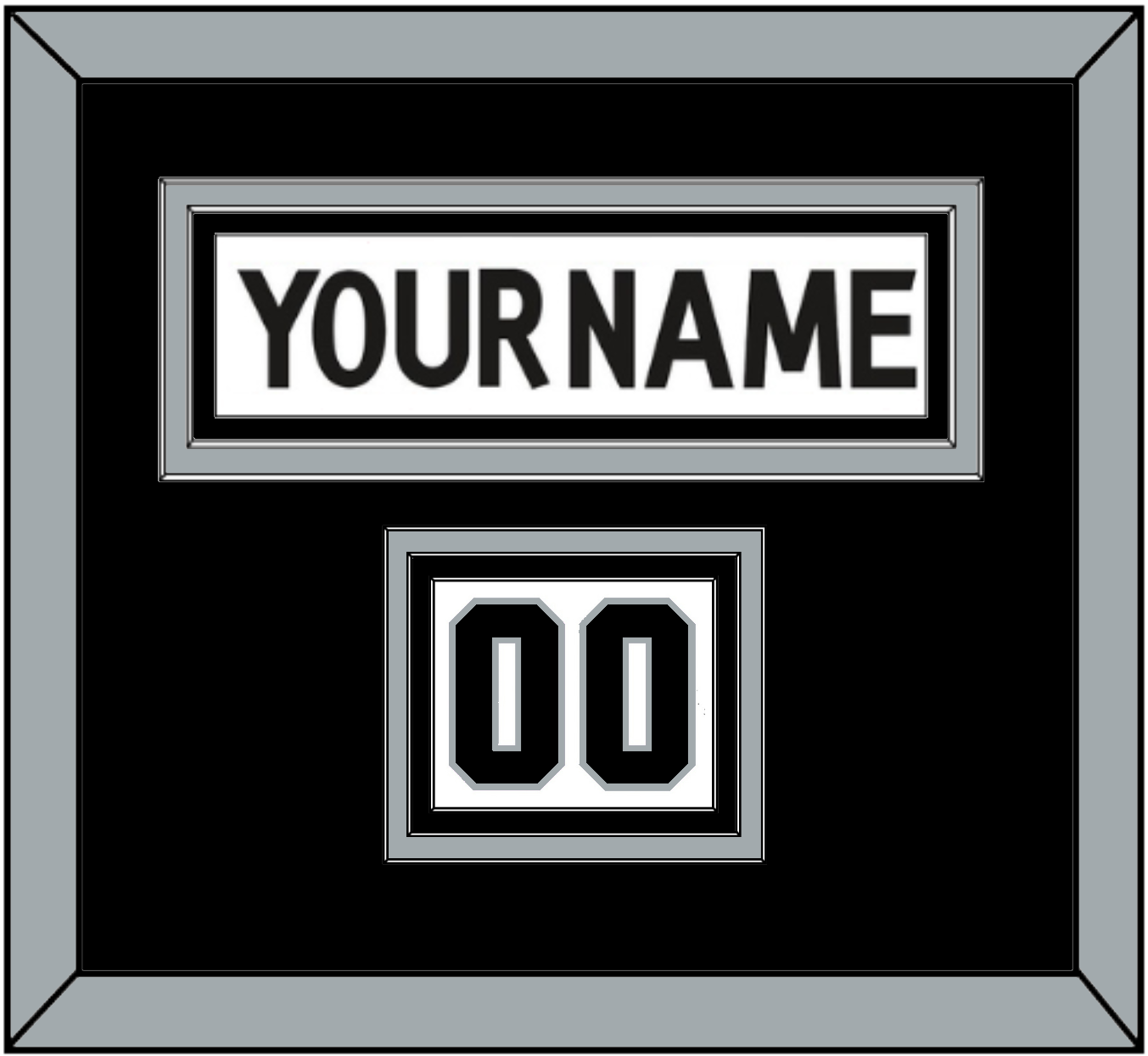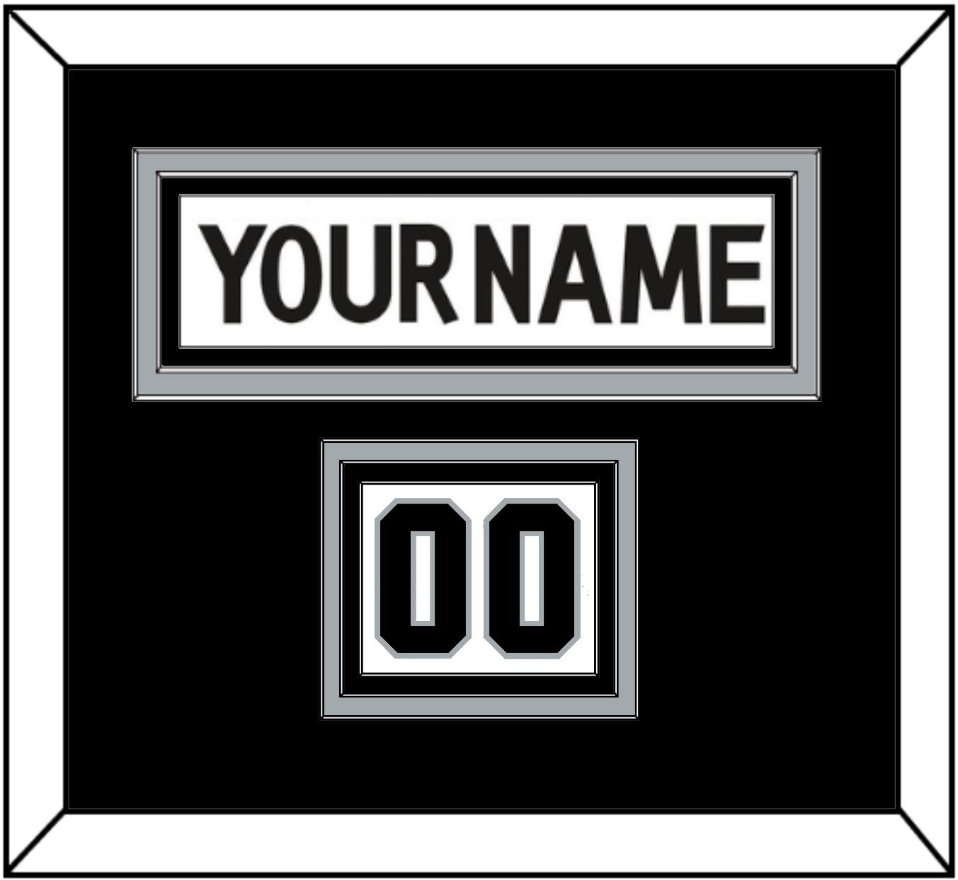 Los Angeles Road White Jersey (2011 Through 2017) Nameplate & Numbers From Shoulder - The Nameplate Is Double Mat Cut: Black Mat Over A Silver Mat, White Nameplate Mounted On A Black Mat. To Match The Jersey, The Numbers Are Triple Mat Cut: Black Mat Over A Silver Mat, Over Black Mat. Black Numbers Mounted On A White Mat. White Or Silver (Metal) Frame.