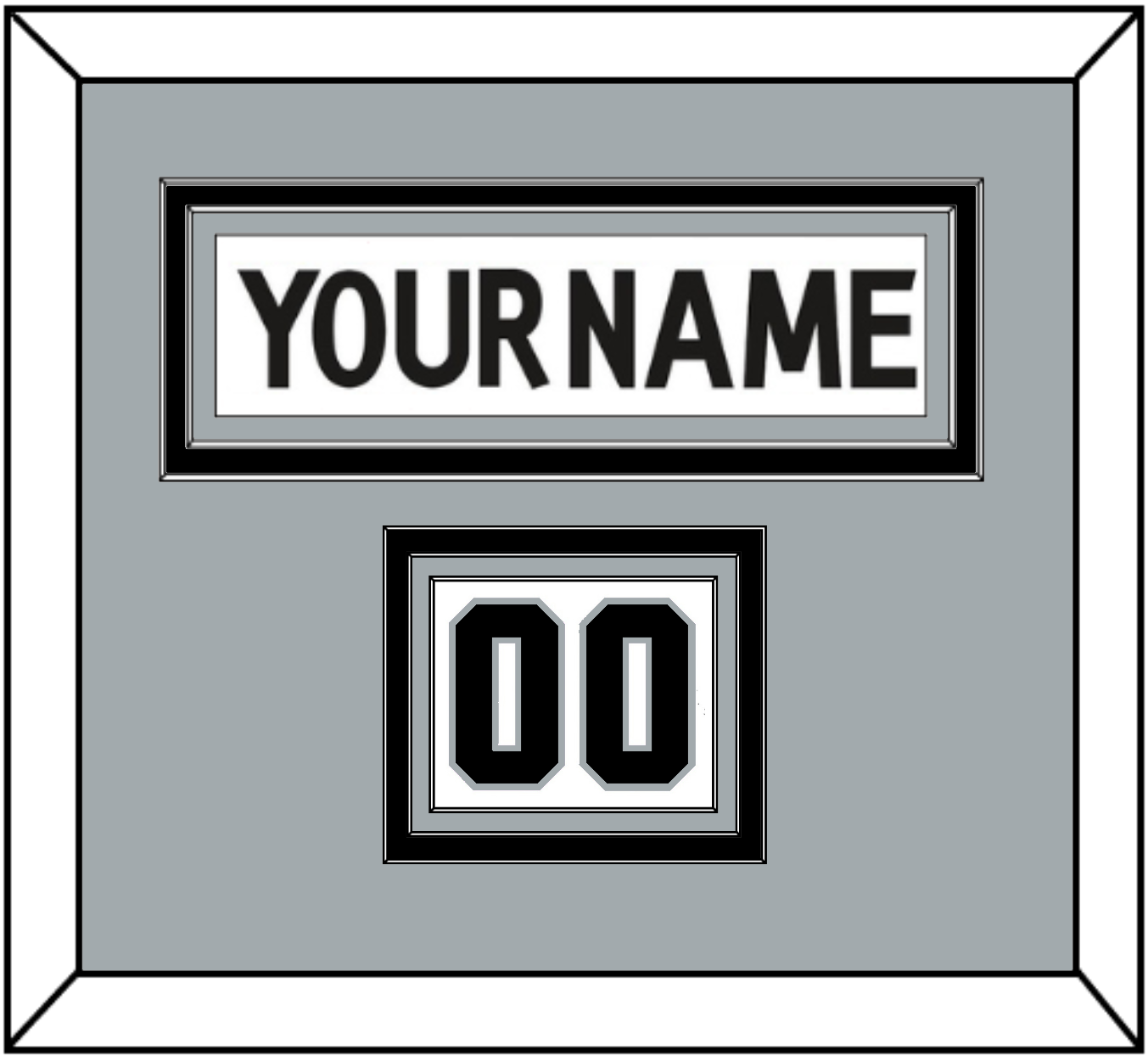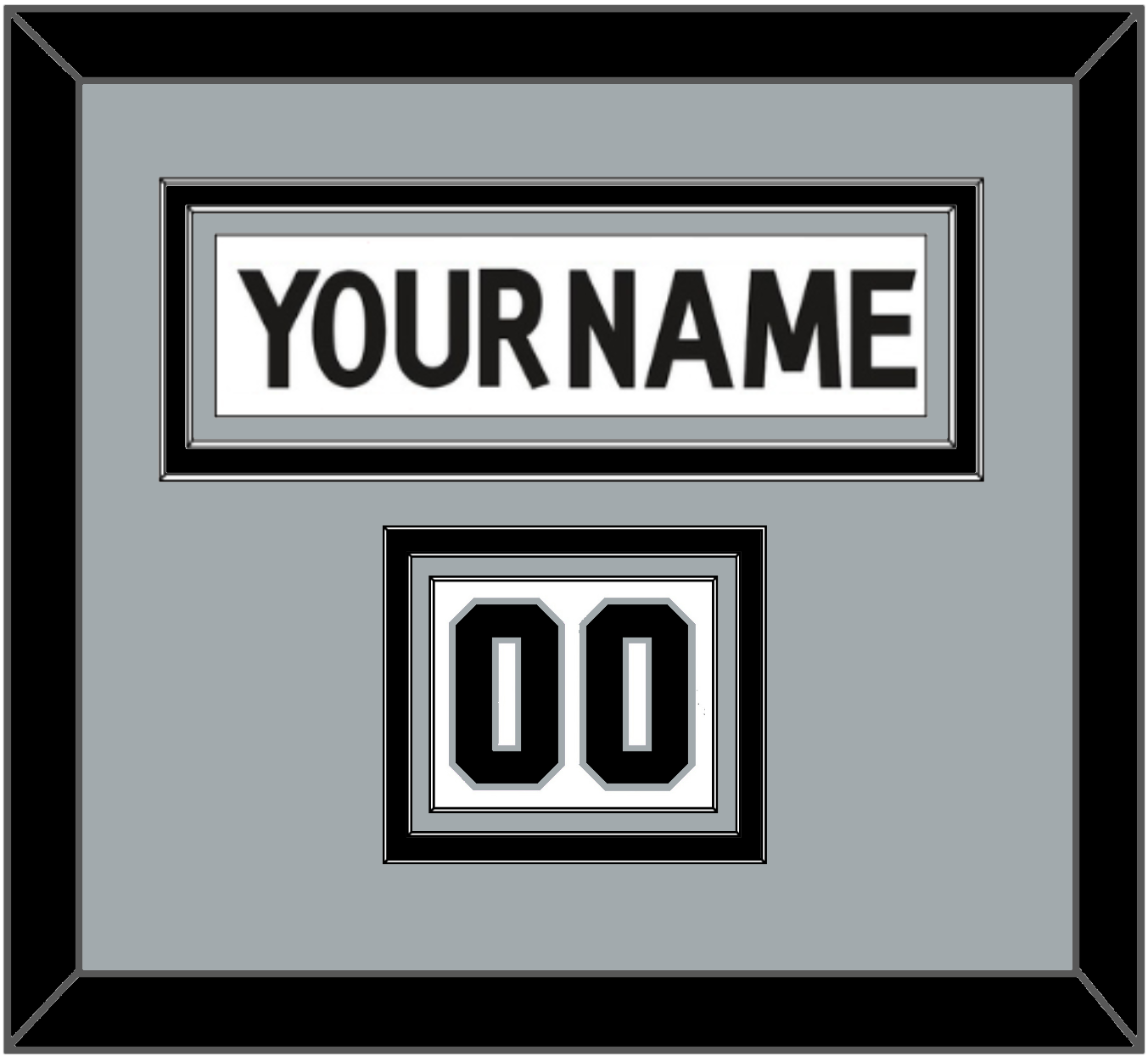 Los Angeles Road White Jersey (2011 Through 2017) Nameplate & Numbers From Shoulder - The Nameplate Is Double Mat Cut: Silver Mat Over A Black Mat, White Nameplate Mounted On A Silver Mat. To Match The Jersey, The Numbers Are Triple Mat Cut: Silver Mat Over A Black Mat, Over Silver Mat. Black Numbers Mounted On A White Mat. Black Or White Frame.