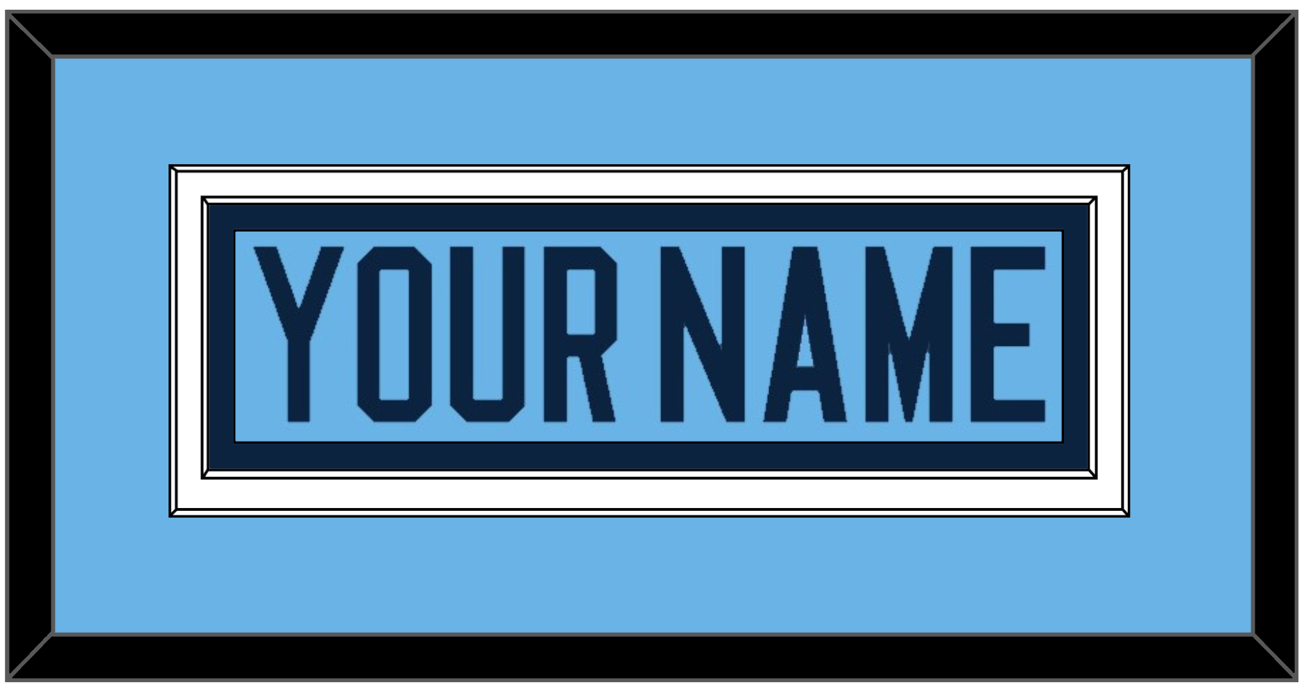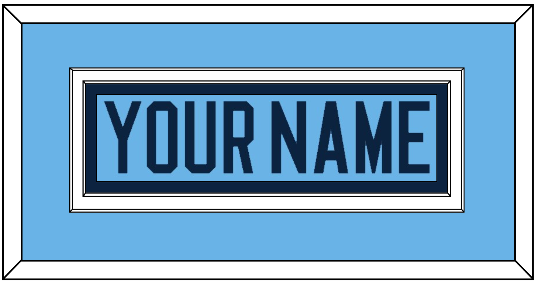 Maine Hockey Alternate Light Blue Jersey (2007 Through 2008) Nameplate. Double Mat: Light Blue Mat Over A White Mat. Light Blue Nameplate Mounted On A Navy Blue Mat. White Or Black Frame.
