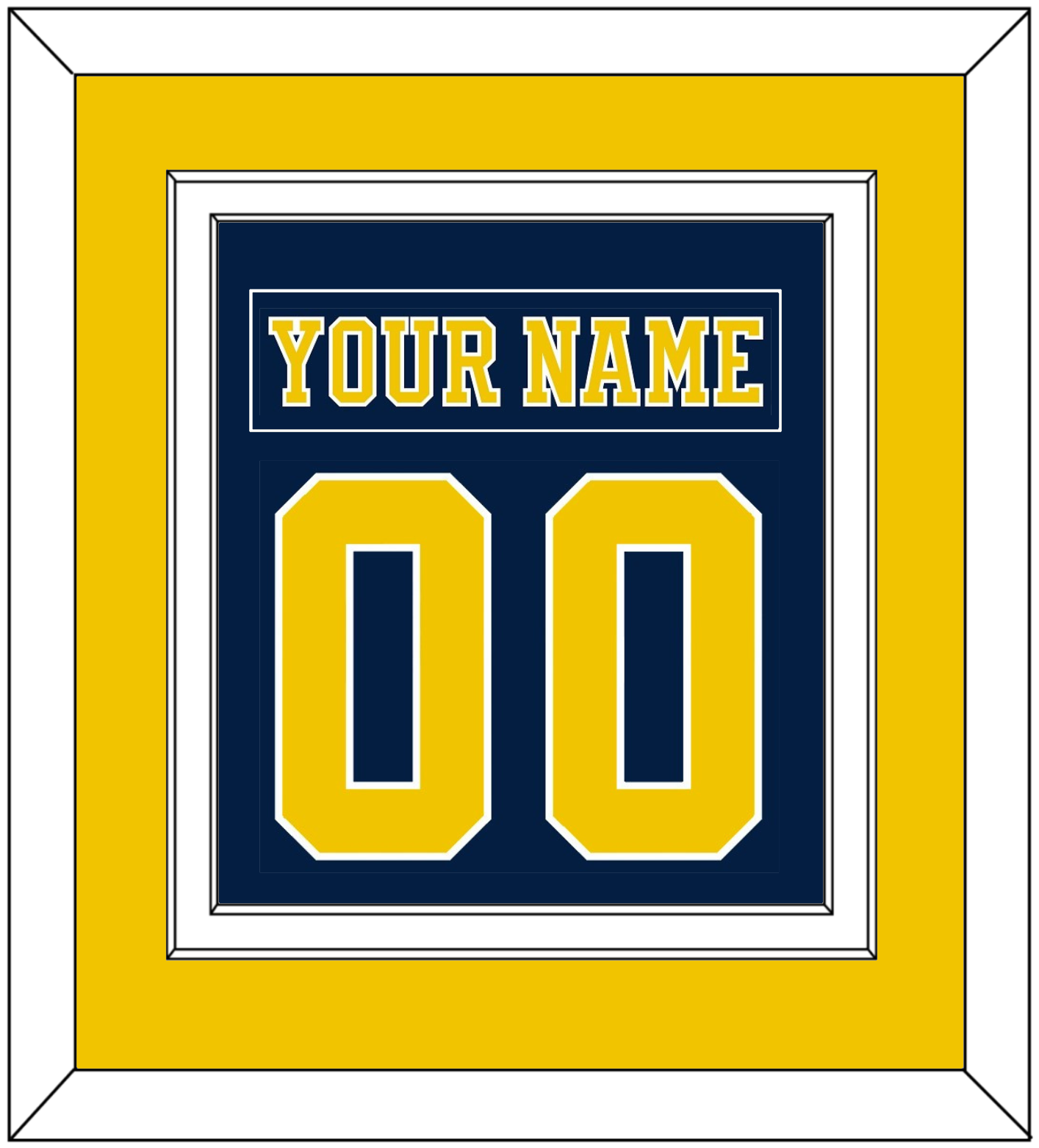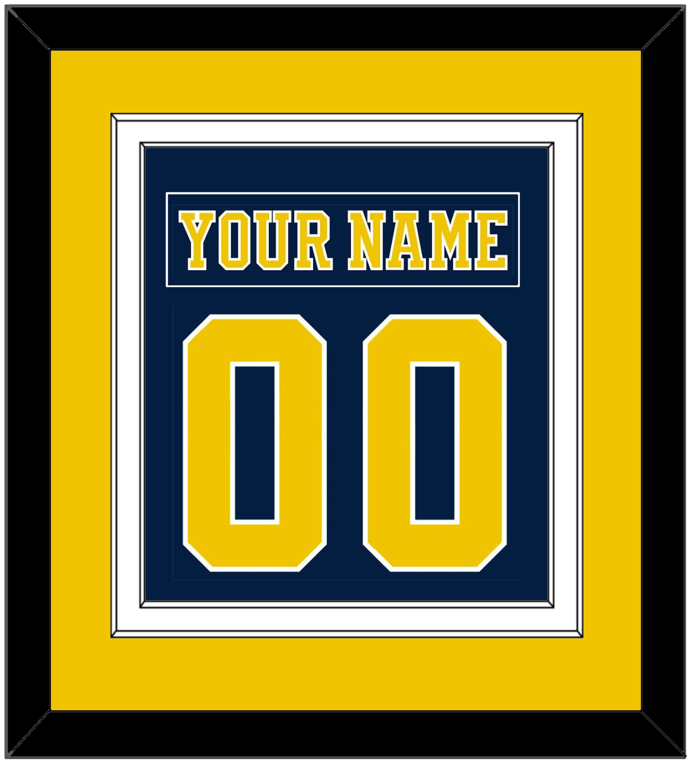 Michigan Road Blue Jersey (2019 Through 2020) Nameplate & Number (From The Back Of The Jersey). Double Mat Cut: Maize Mat Over A White Mat. Blue Nameplate And Maize Number Mounted On A Blue Mat. White Or Black Frame.