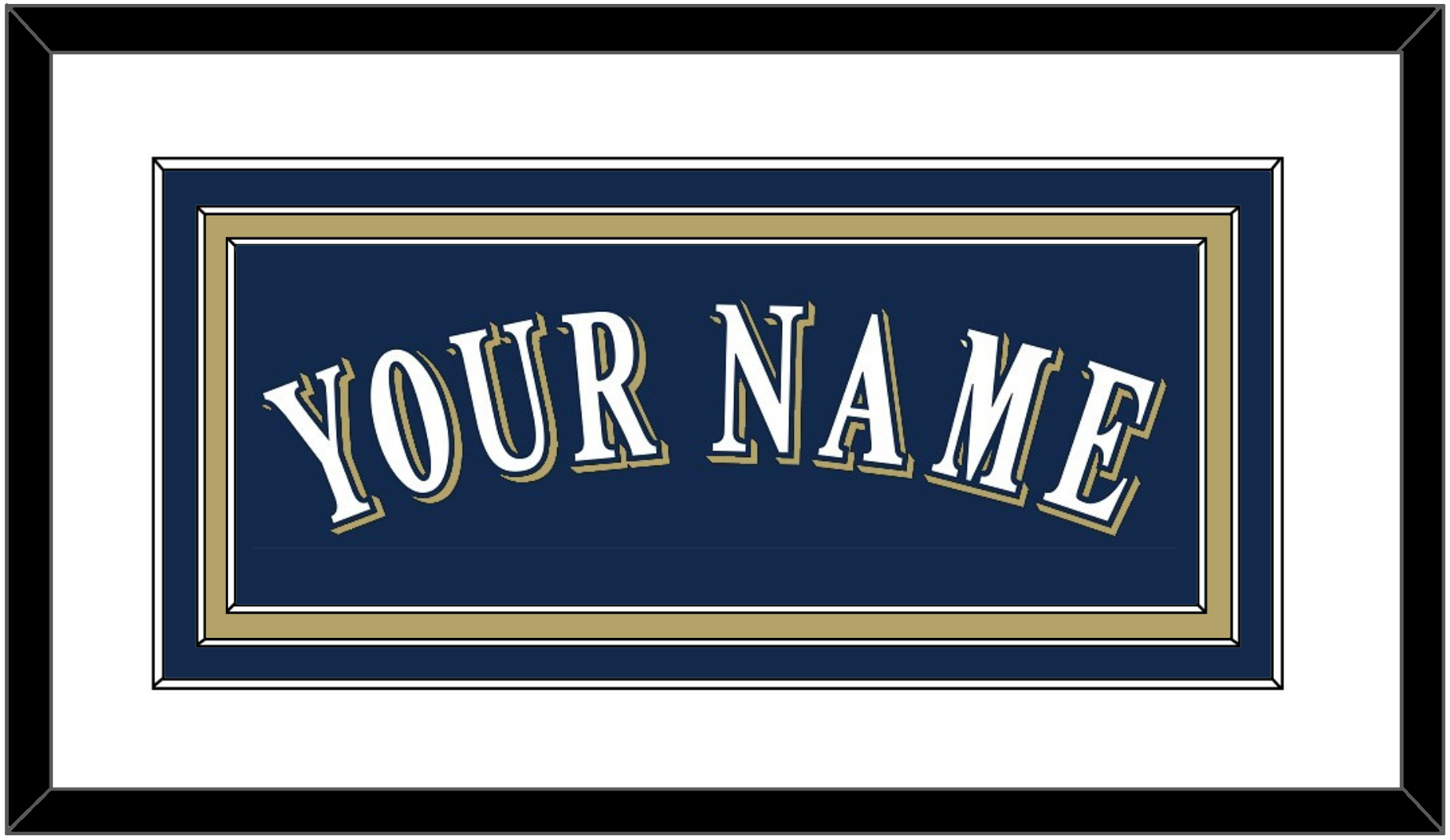 Milwaukee Alternate Road Navy Jersey (2016 Through 2019) Name. Triple Mat: White Mat Over A Blue Mat Over A Tan Mat. White Name Mounted On Blue Mat. Black Frame.