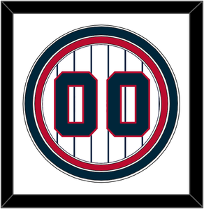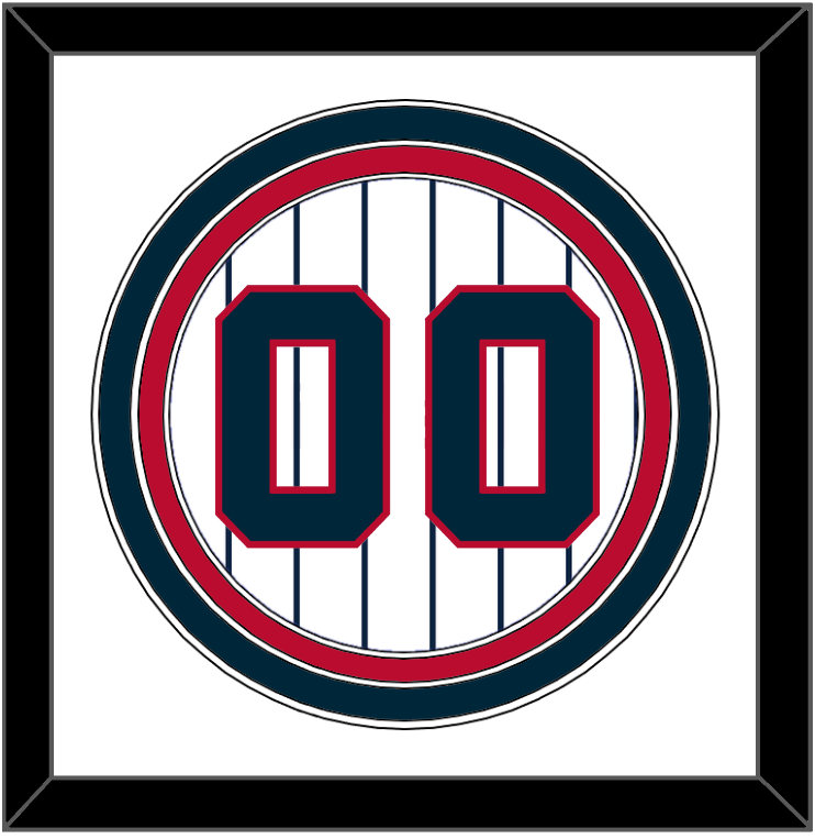 Minnesota Home White Pinstripes Jersey (1970 Through 1971) Numbers. Triple Mat: White Mat Over A Blue Mat, Over A Red Mat. Blue Number Mounted On White Pinstripe Mat. Black Frame.