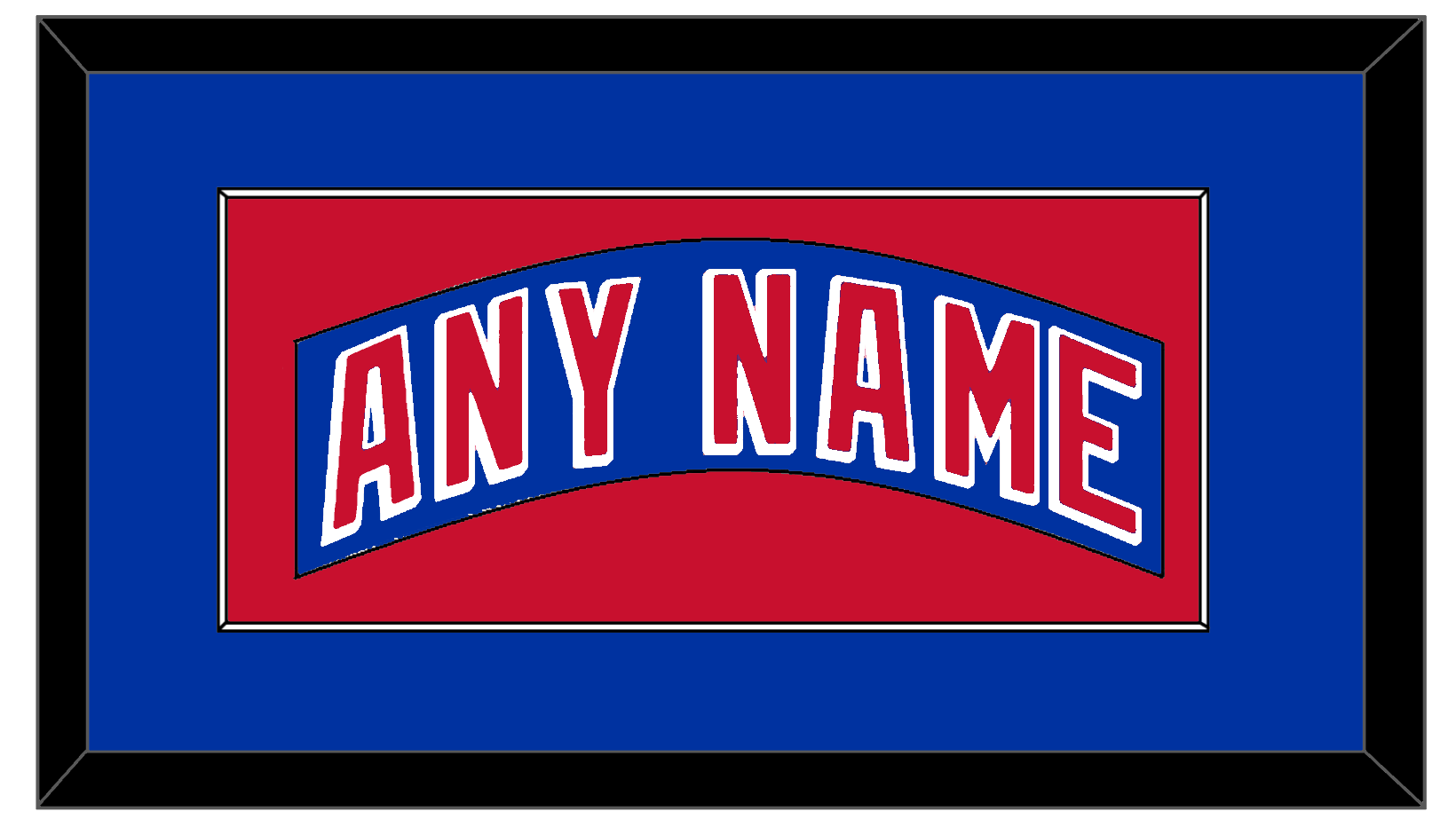 New York Home Blue Jersey (2004 Through 2017) Nameplate. Single Mat: Blue Mat, Blue Nameplate Mounted On Red Mat. White Or Black Frame.