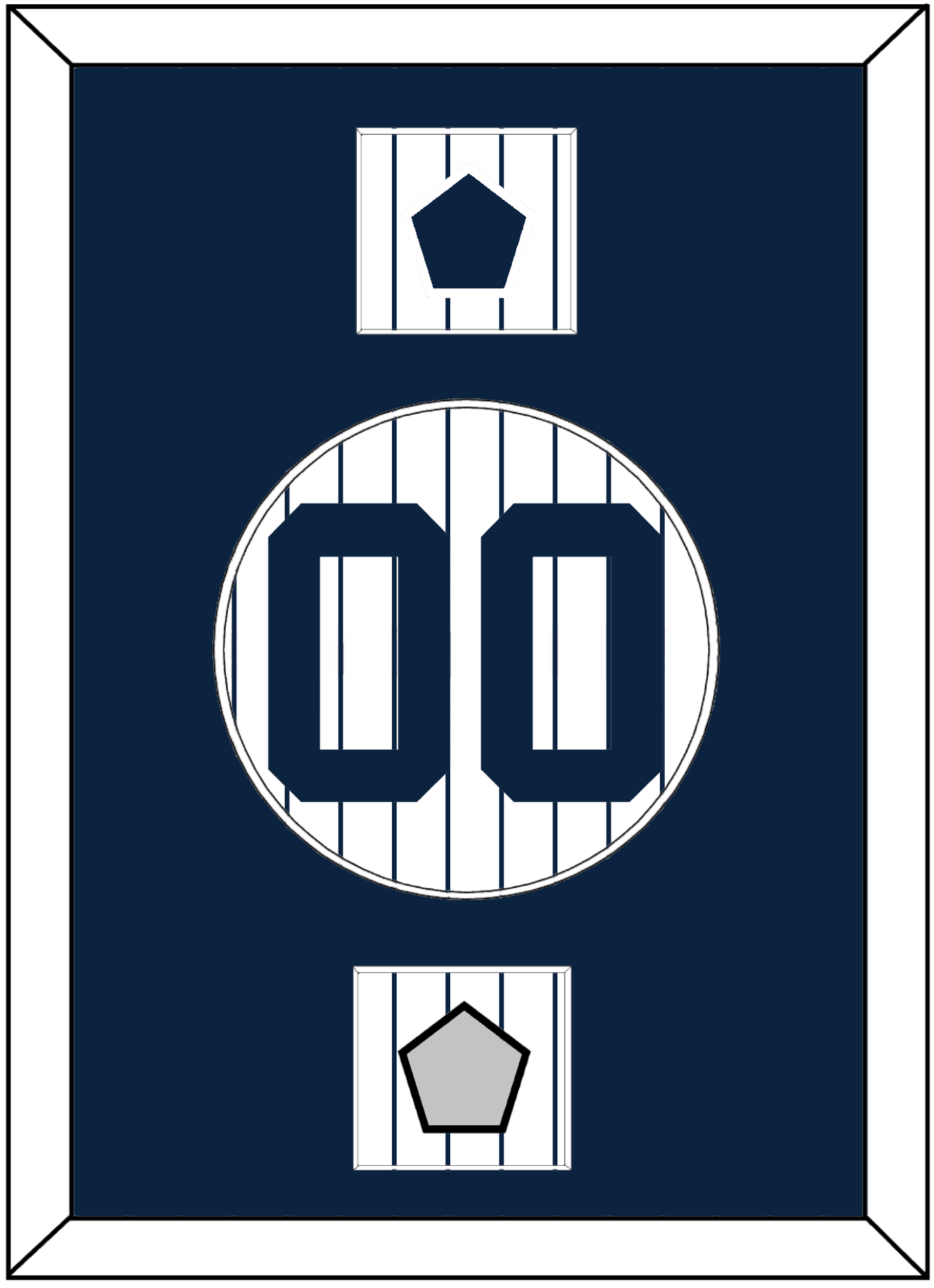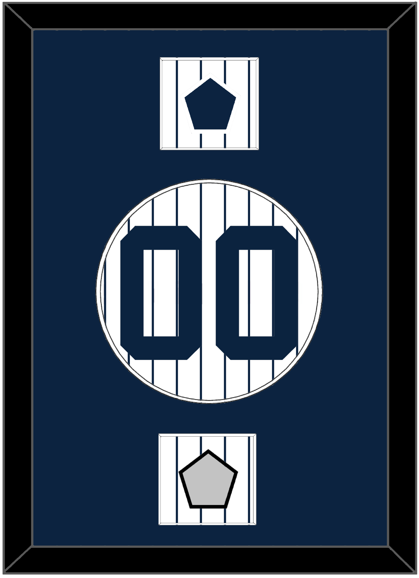 New York Pinstripe Jersey Number, “NY” Logo Patch From Chest & A World Series Jersey Patch 1977, 1978, 1996, 1998, 1999, 2000 Or 2009. Single Mat Cut: Navy Blue Mat With Navy Blue Numbers & Patch Mounted On Pinstripes. White Or Black Frame.
