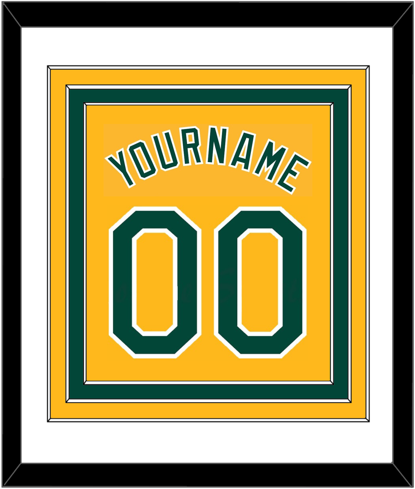 Oakland Alternate Gold Jersey (2011 Through 2018) Name & Number. White Mat Over A Gold Mat Over A Green Mat. Green Name And Number Mounted On A Gold Mat. Black Frame.