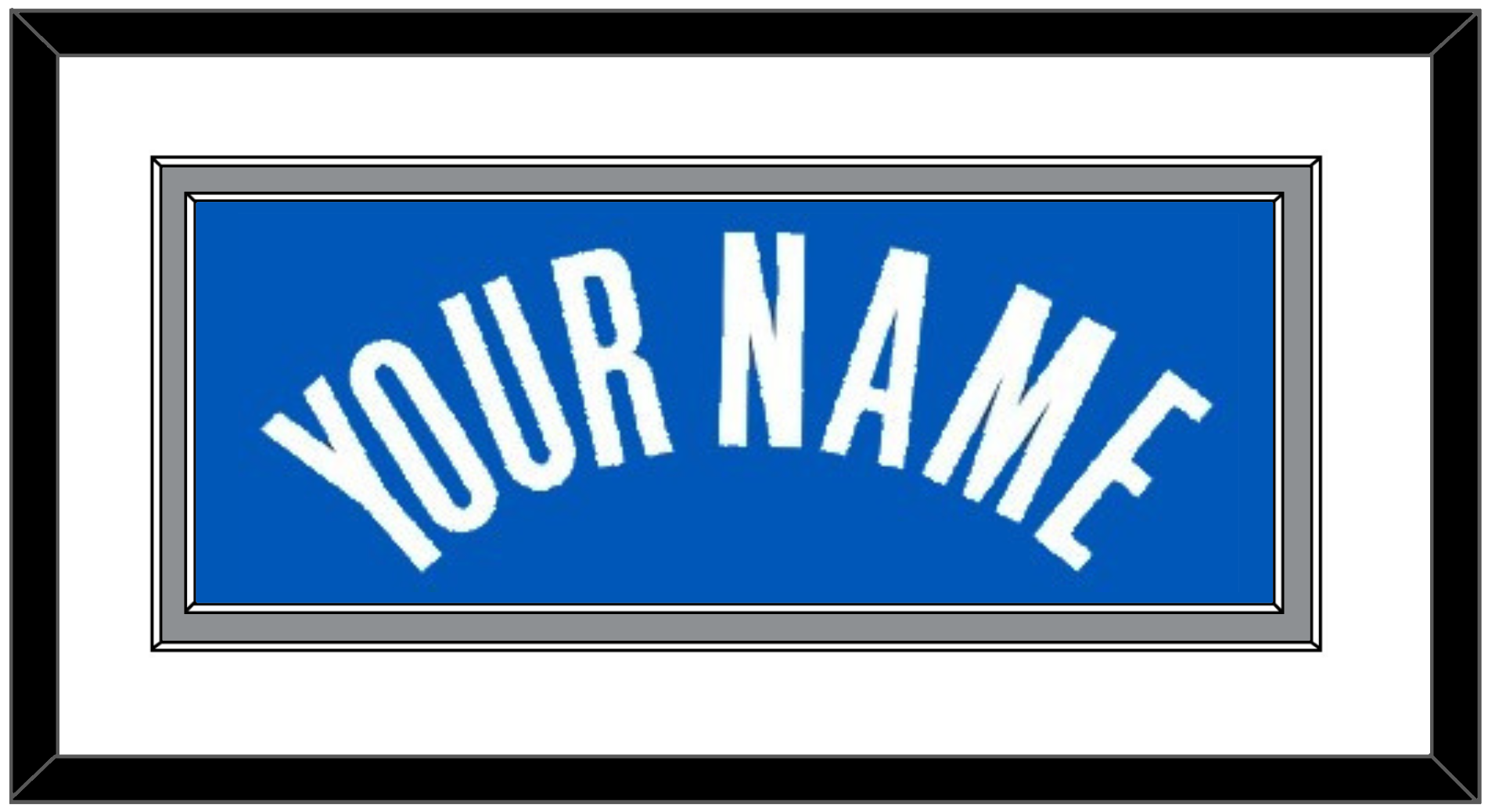 Orlando Blue Statement Jersey (2019 Through 2022) Name. Double Mat: White Mat Over A Silver Mat, White Name Mounted On A Blue Mat. Black Frame.