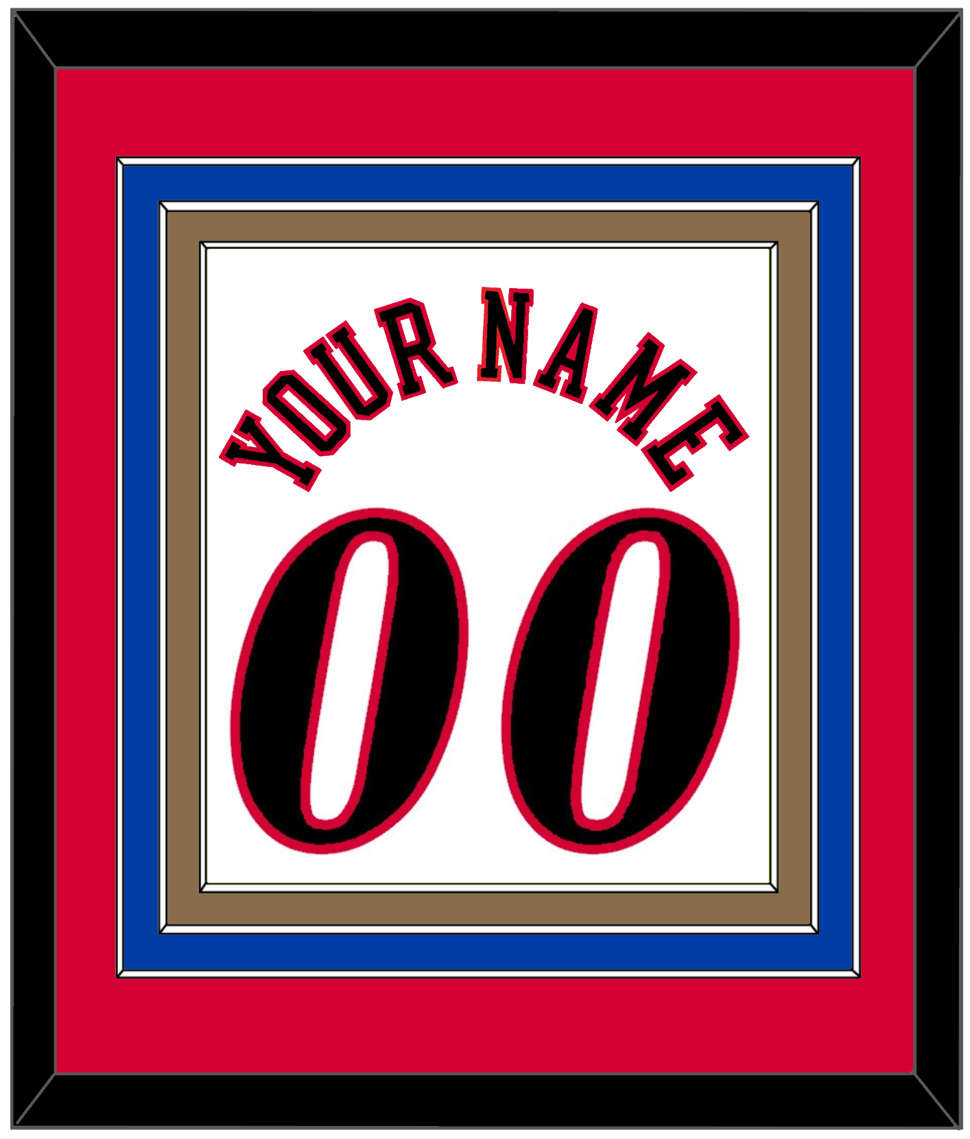 Philadelphia Home White Jersey (1997 Through 2009) Name & Number. Triple Mat: Red Mat Over A Blue Mat Over A Gold Mat. Black Name And Number Mounted On A White Mat. Black Or White Frame.