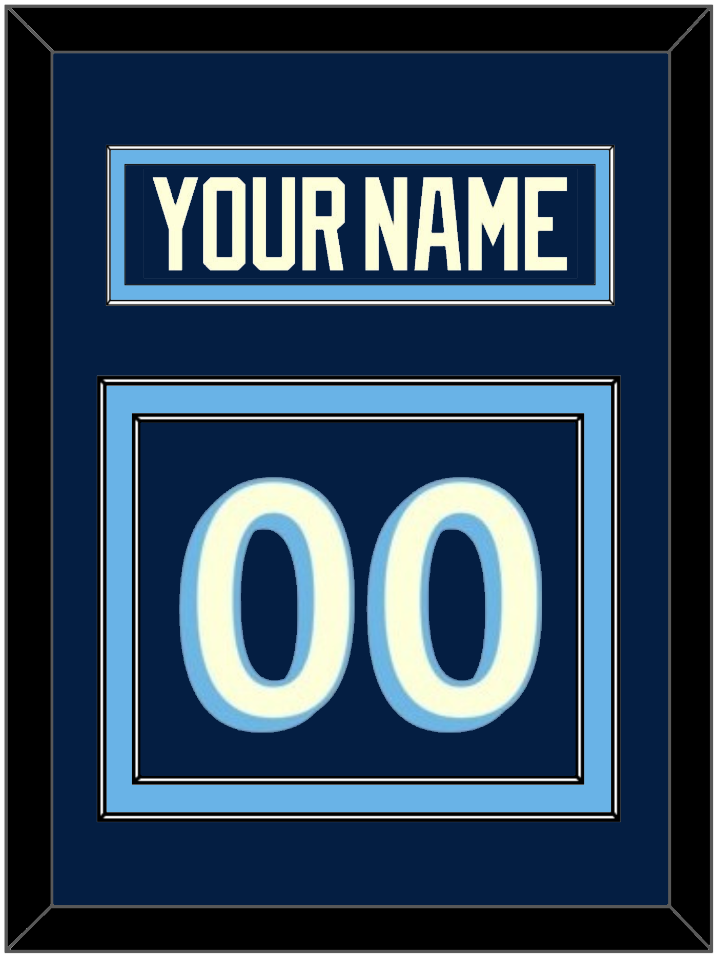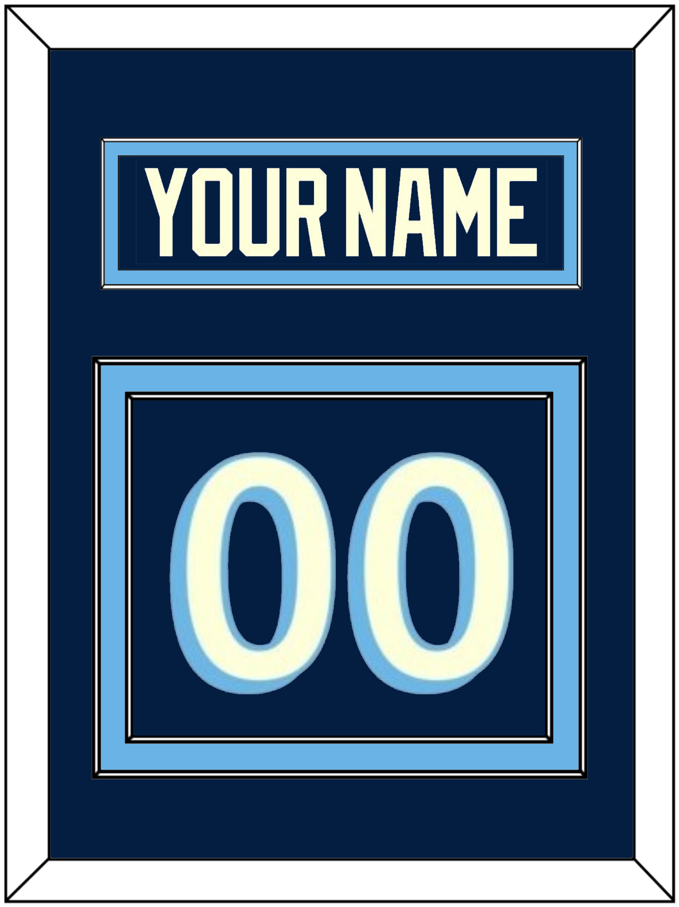 Pittsburgh Alternate Navy Blue (2011 Through 2013) Jersey Nameplate & Numbers (From The Back Of The Jersey).  Nameplate Is Single Mat Cut:  Navy Blue Mat With Navy Blue Nameplate Mounted On A Powder Blue Mat.  To Match The Jersey, Number Is Double Mat Cut:  Navy Blue Mat Over A Powder Blue Mat, White Number Mounted On A Navy Blue Mat.  White Or Black Frame.
