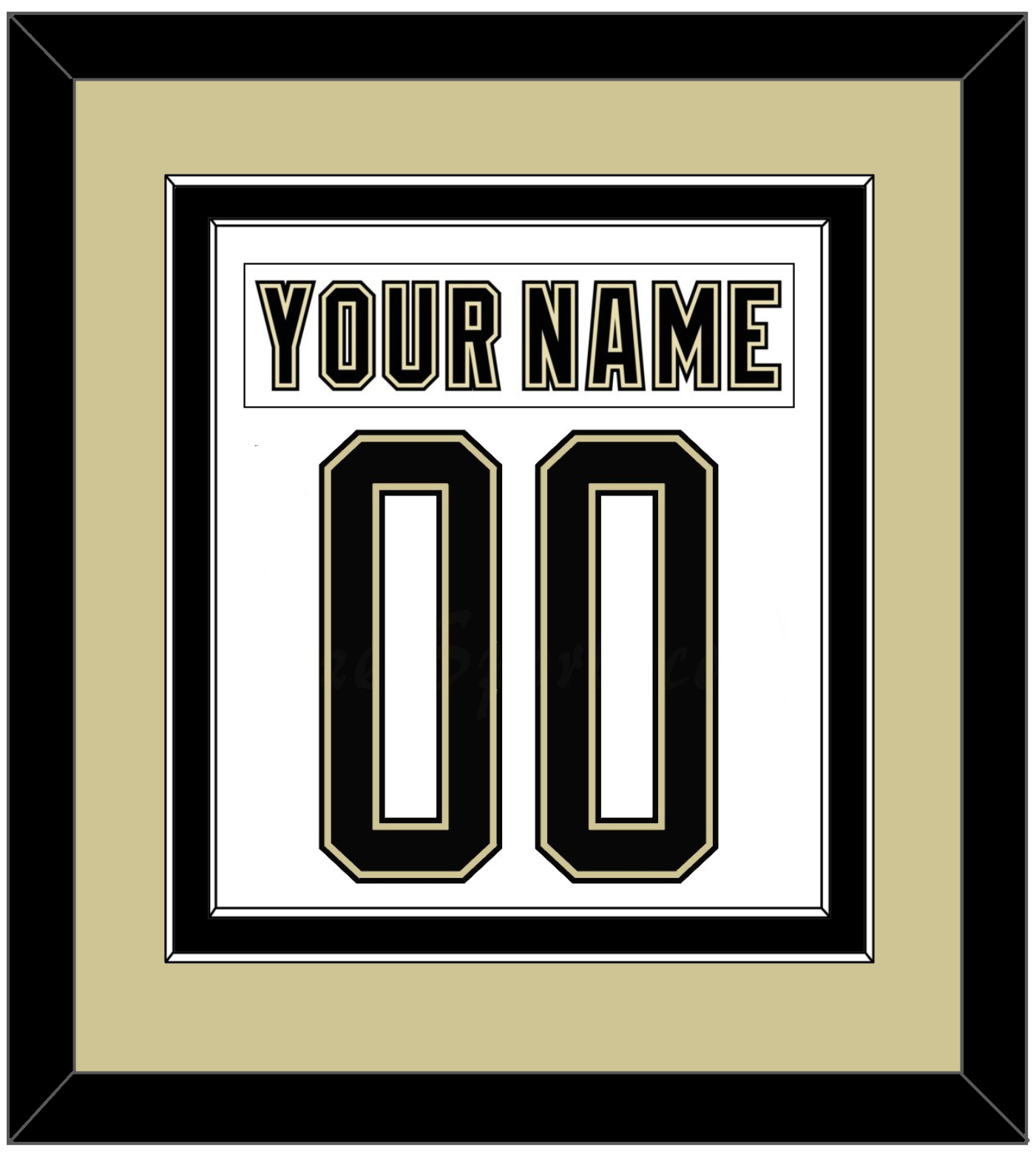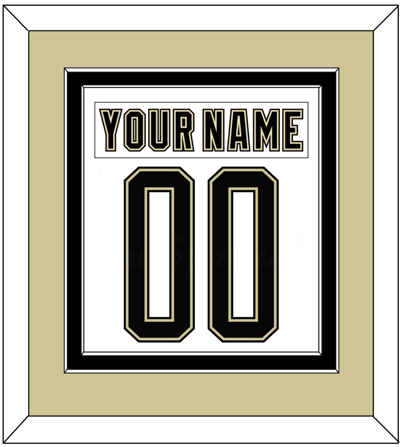 Pittsburgh 2014 Stadium Series White Jersey Nameplate & Number (From The Back Of The Jersey). Double Mat Cut: Gold Mat Over A Black Mat. White Nameplate And Black Number Mounted On A White Mat. Black Or White Frame.