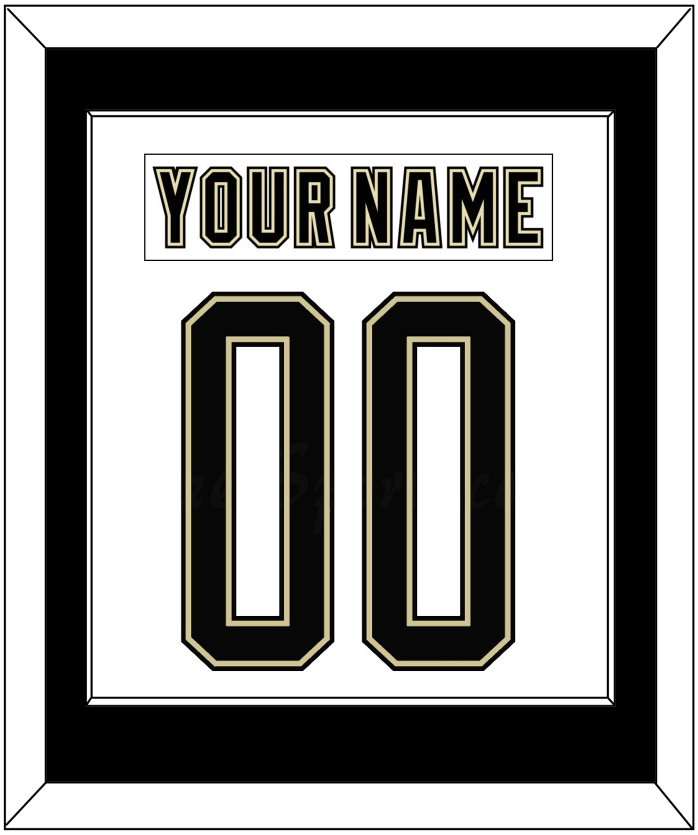 Pittsburgh 2014 Stadium Series White Jersey Nameplate & Number (From The Back Of The Jersey). Single Mat Cut: Black Mat With White Nameplate And Black Number Mounted On A White Mat. White Frame.