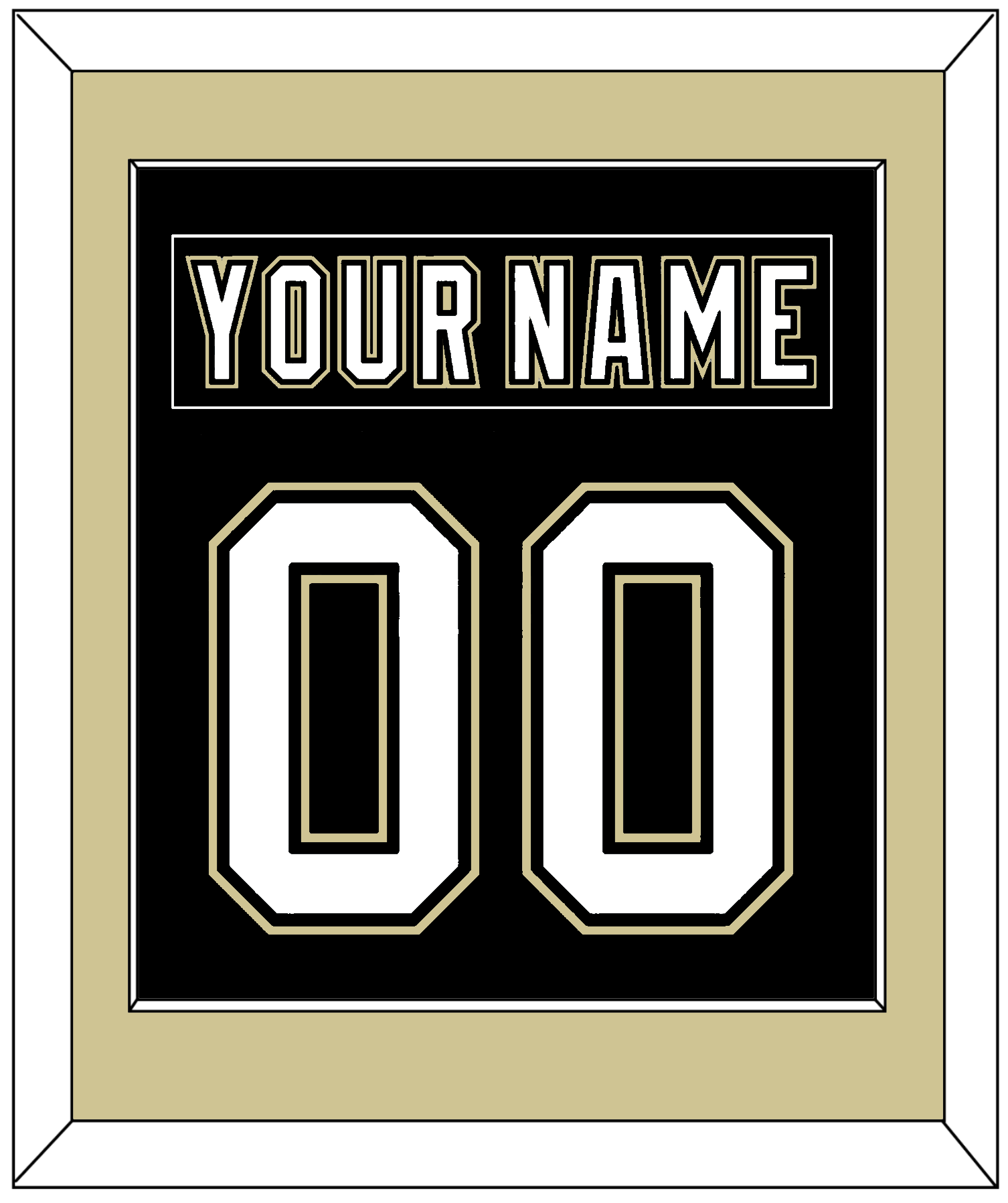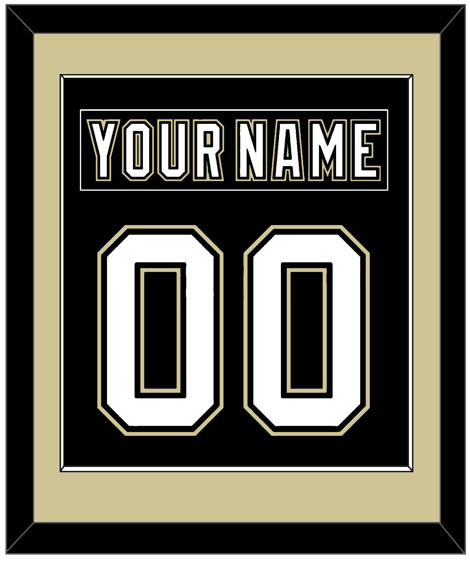 Pittsburgh Home/Road Black Jersey (2000 Through 2007) Nameplate & Number (From The Back Of The Jersey).   Single Mat Cut:  Gold Mat With Black Nameplate And White Number Mounted On A Black Mat.  Black Or White Frame.