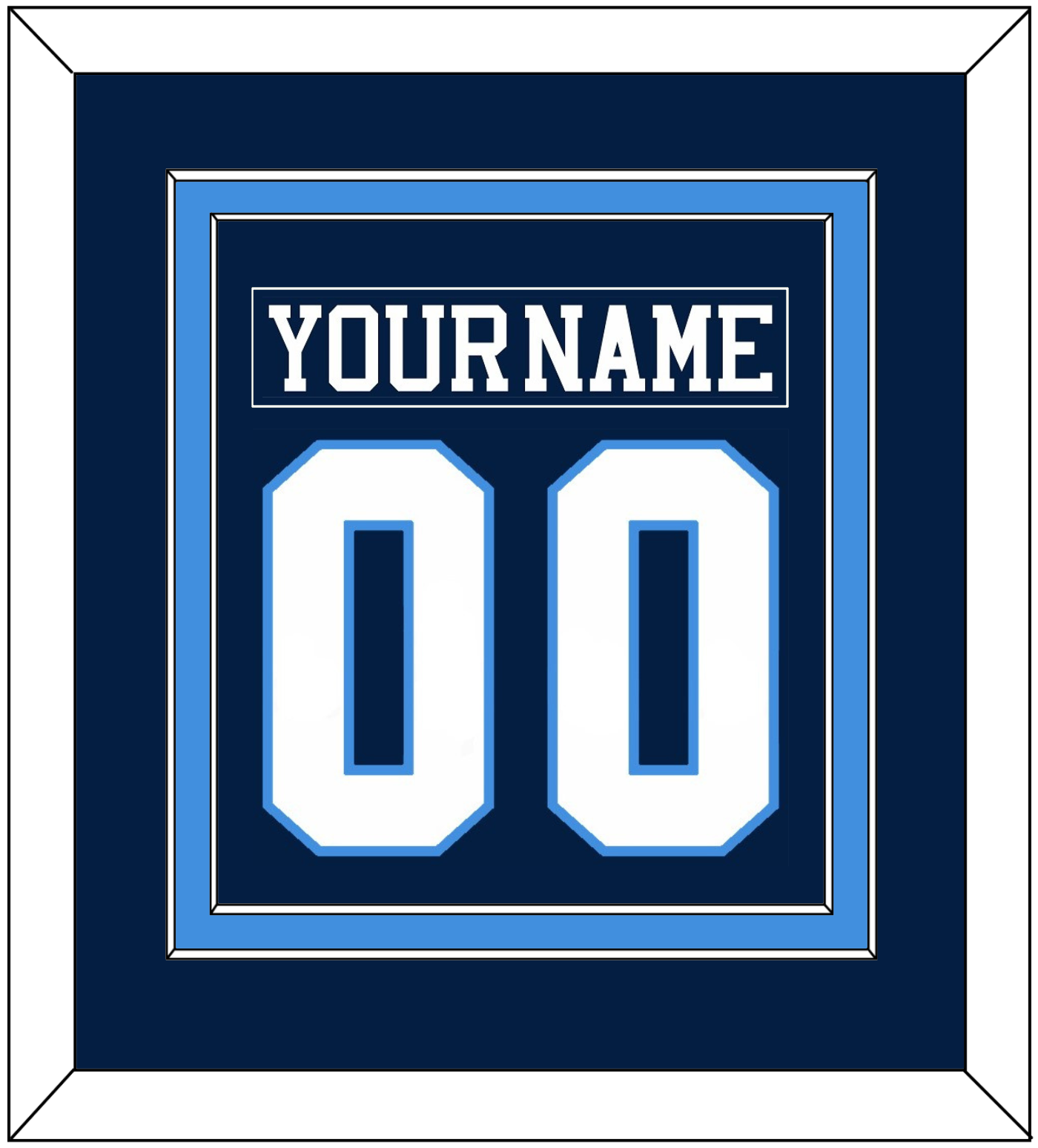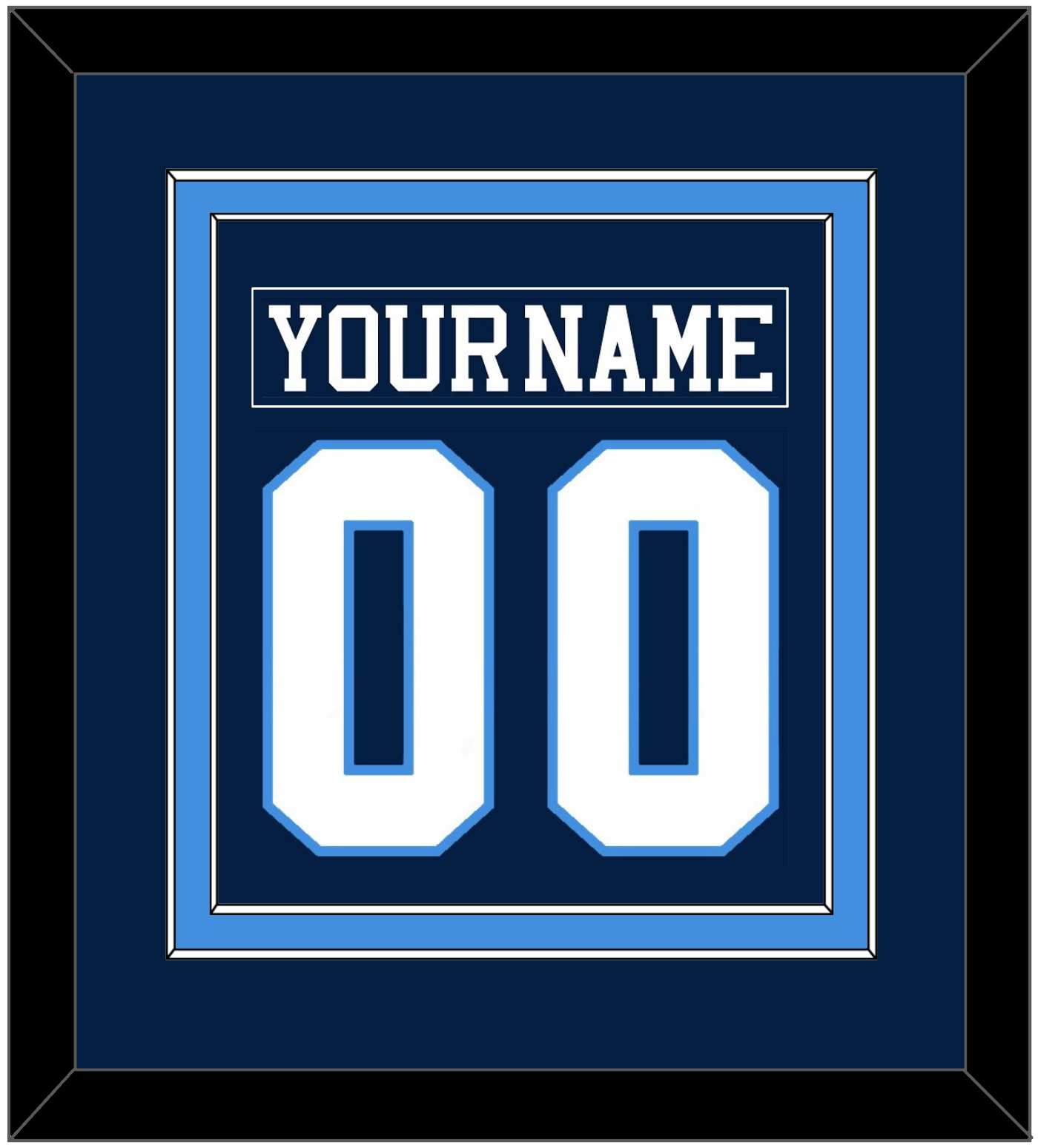Pittsburgh Road Blue Jersey (1977 Through 1980) Nameplate & Number (From The Back Of The Jersey). Double Mat Cut: Blue Mat Over A Powder Blue Mat. Blue Nameplate And White Number Mounted On A Blue Mat. White Or Black Frame.