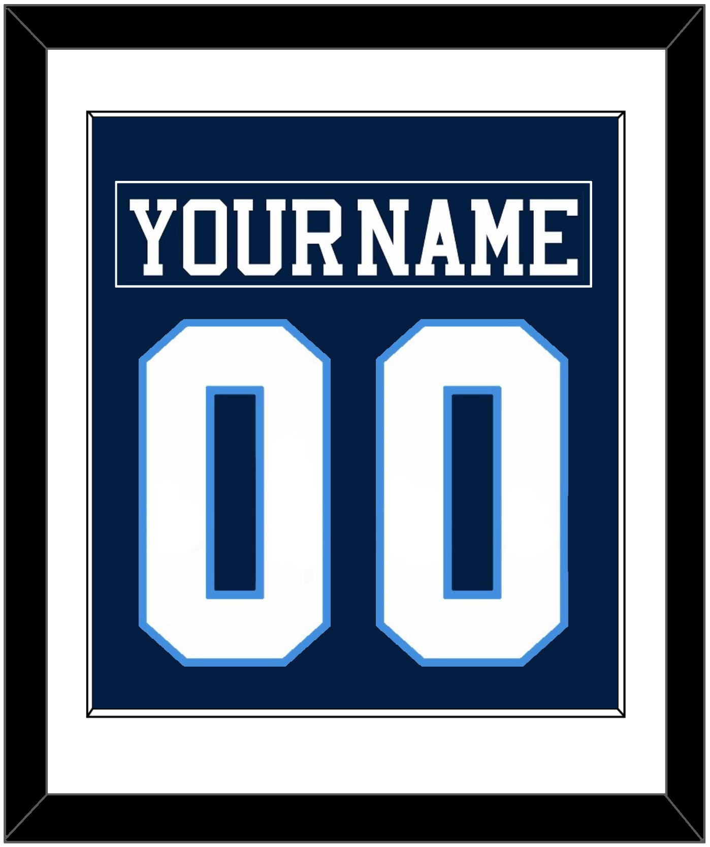 Pittsburgh Road Blue Jersey (1977 Through 1980) Nameplate & Number (From The Back Of The Jersey).   Single Mat Cut:  White Mat With Blue Nameplate And White Number Mounted On A Blue Mat.  Black Frame.