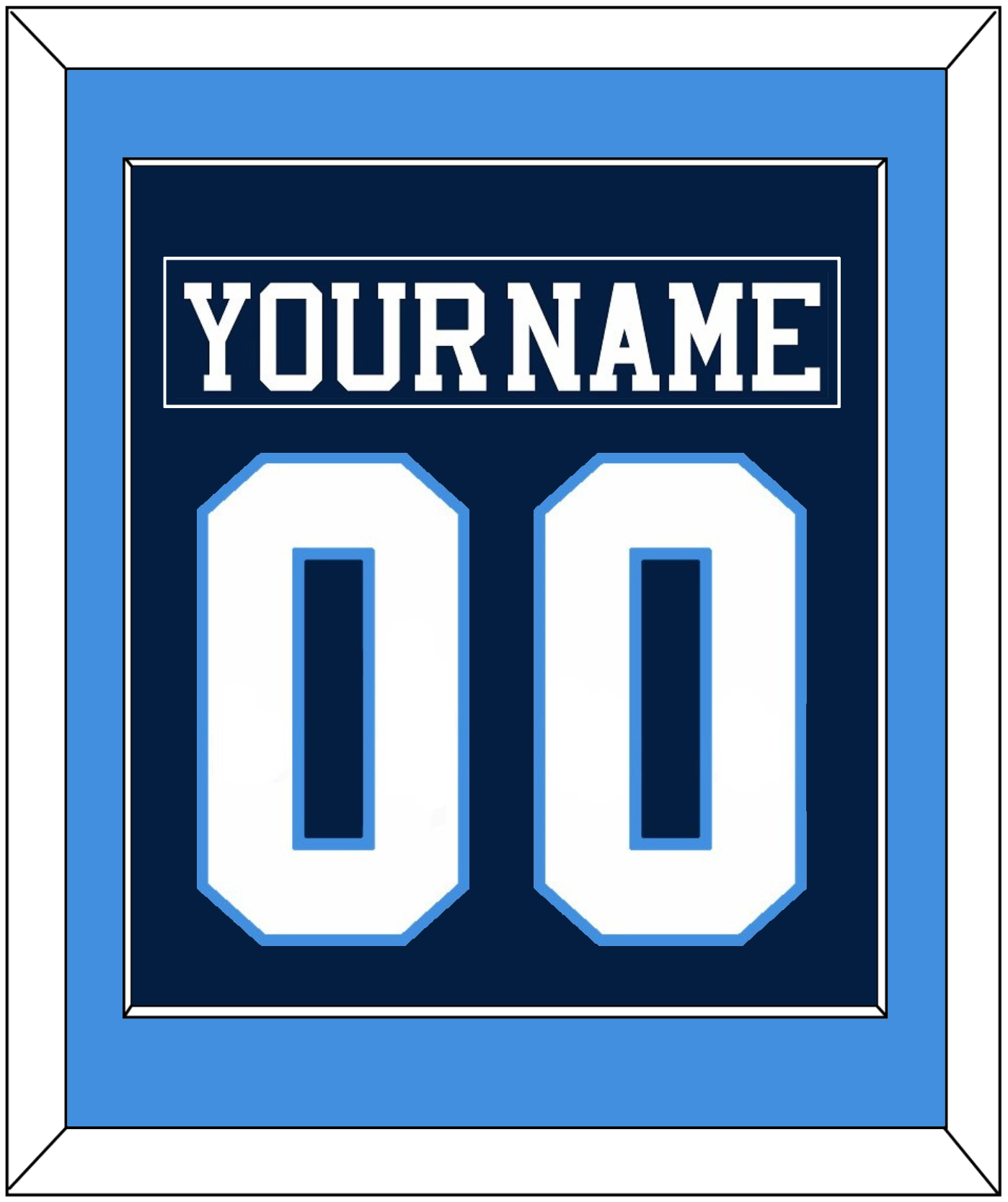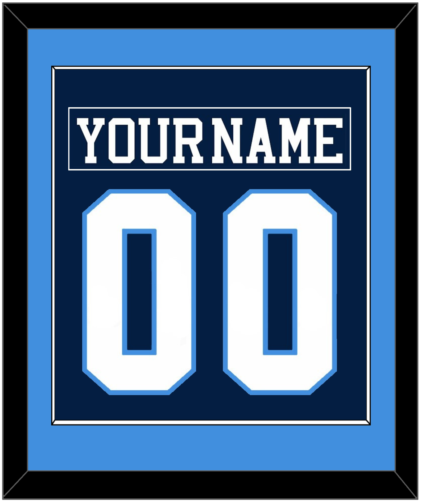 Pittsburgh Road Blue Jersey (1977 Through 1980) Nameplate & Number (From The Back Of The Jersey). Single Mat Cut: Powder Blue Mat With Blue Nameplate And White Number Mounted On A Blue Mat. White Or Black Frame.