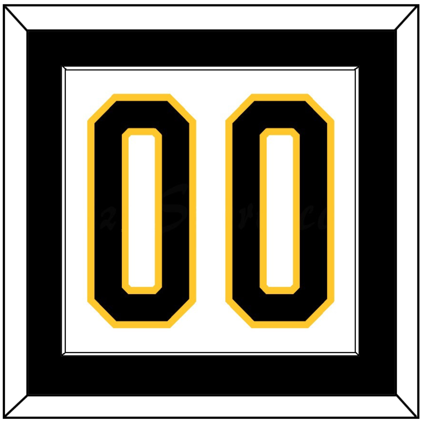 Pittsburgh Home White Jersey (1980 Through 1981) Number (From The Back Of The Jersey). Single Mat Cut: Black Mat With Black Number Mounted On A White Mat. White Frame.