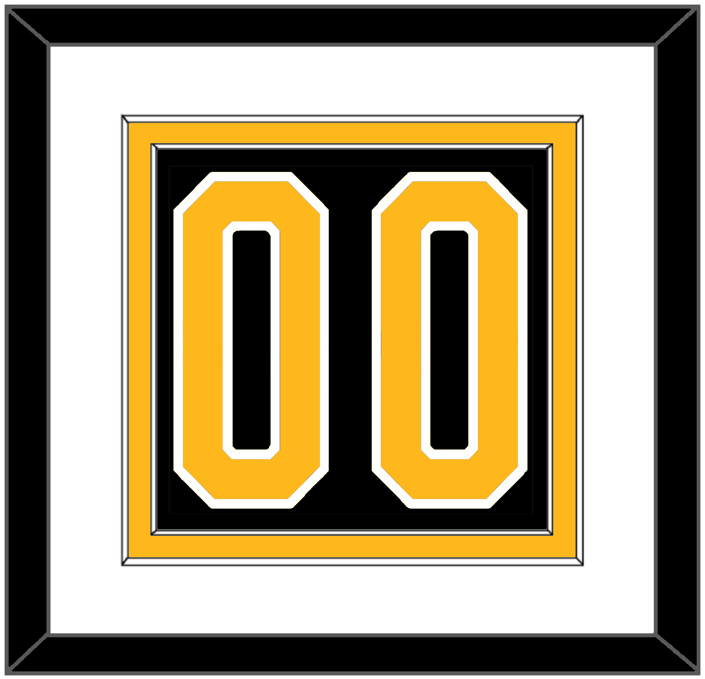 Pittsburgh Road Black Jersey (1980 Through 1981) Number (From The Back Of The Jersey). Double Mat Cut: White Mat Over A Gold Mat. Gold Number Mounted On A Black Mat. Black Frame.