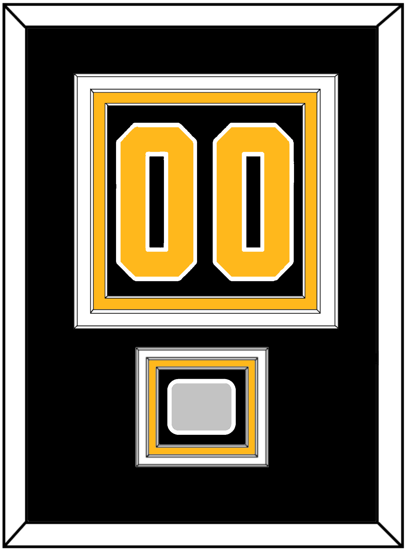 Pittsburgh Road Black Jersey (1988 Through 1992) Number (From The Back Of The Jersey) With A 1991, 1992, 2009, 2016 Or 2017 Stanley Cup Champions Patch. Triple Mat Cut: Black Mat Over A White Mat Over A Gold Mat. Gold Number & Patch Mounted On A Black Mat. White Frame.
