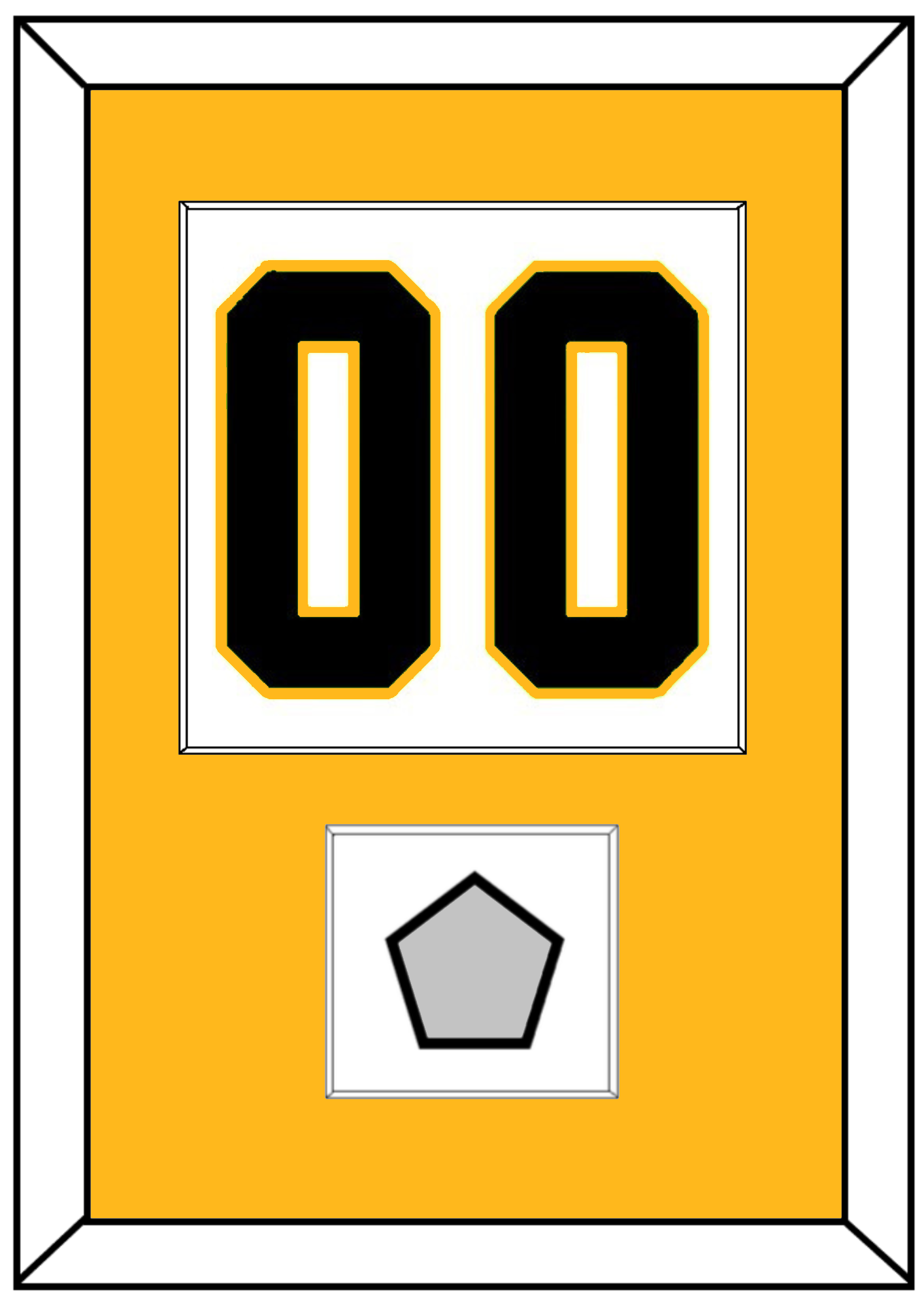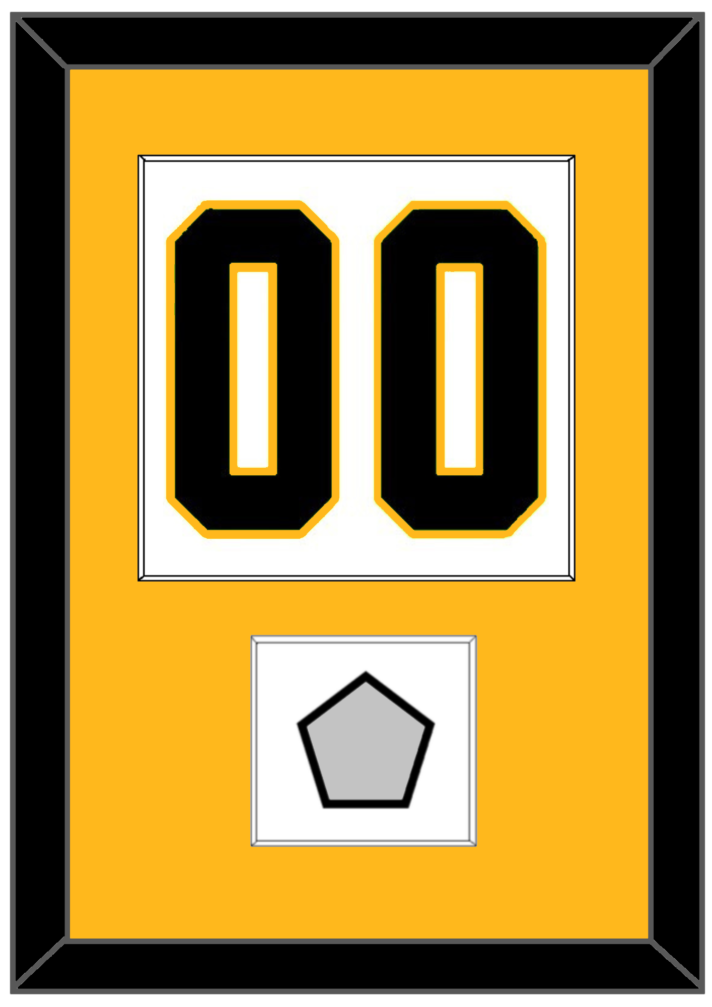 Pittsburgh Home White Jersey (1988 Through 1992) Number (From The Back Of The Jersey) With 1991, 1992, 2009, 2016 Or 2017 Stanley Cup Finals Patch. Single Mat Cut: Gold Mat With Black Number & Patch Mounted On A White Mat. Black Or White Frame.