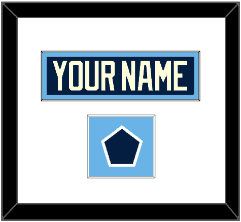 Pittsburgh 2011 Winter Classic Blue Jersey Nameplate With Game Logo Patch. Single Mat Cut: White Mat With Blue Nameplate & Patch Mounted On A Powder Blue Mat. Black Frame.